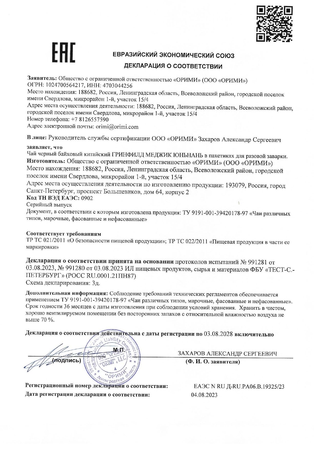 Чай GREENFIELD "Magic Yunnan" черный, 100 пакетиков в конвертах по 2 г, 0583-09