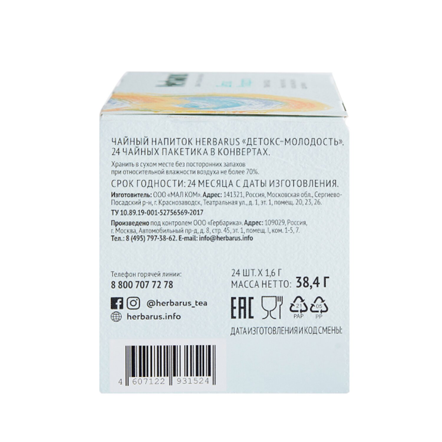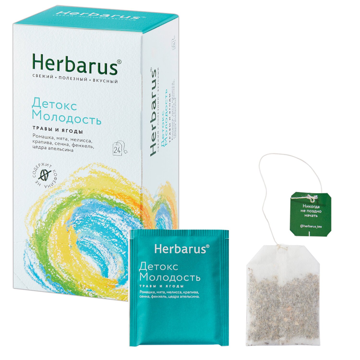 Чай HERBARUS "Детокс Молодость" травяной, 24 пакетика в конвертах по 1,8 г