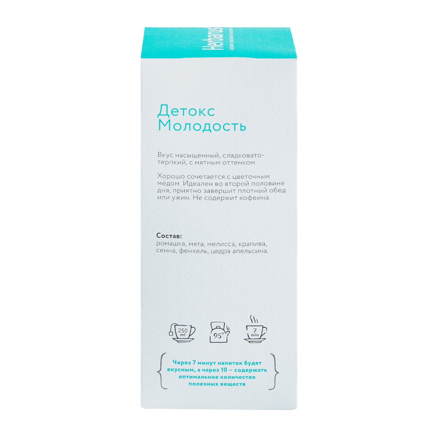 Травяной чай HERBARUS "Детокс Молодость" отличается сладковато-терпким вкусом с мятным оттенком. Хорошо сочетается с цветочным мёдом.