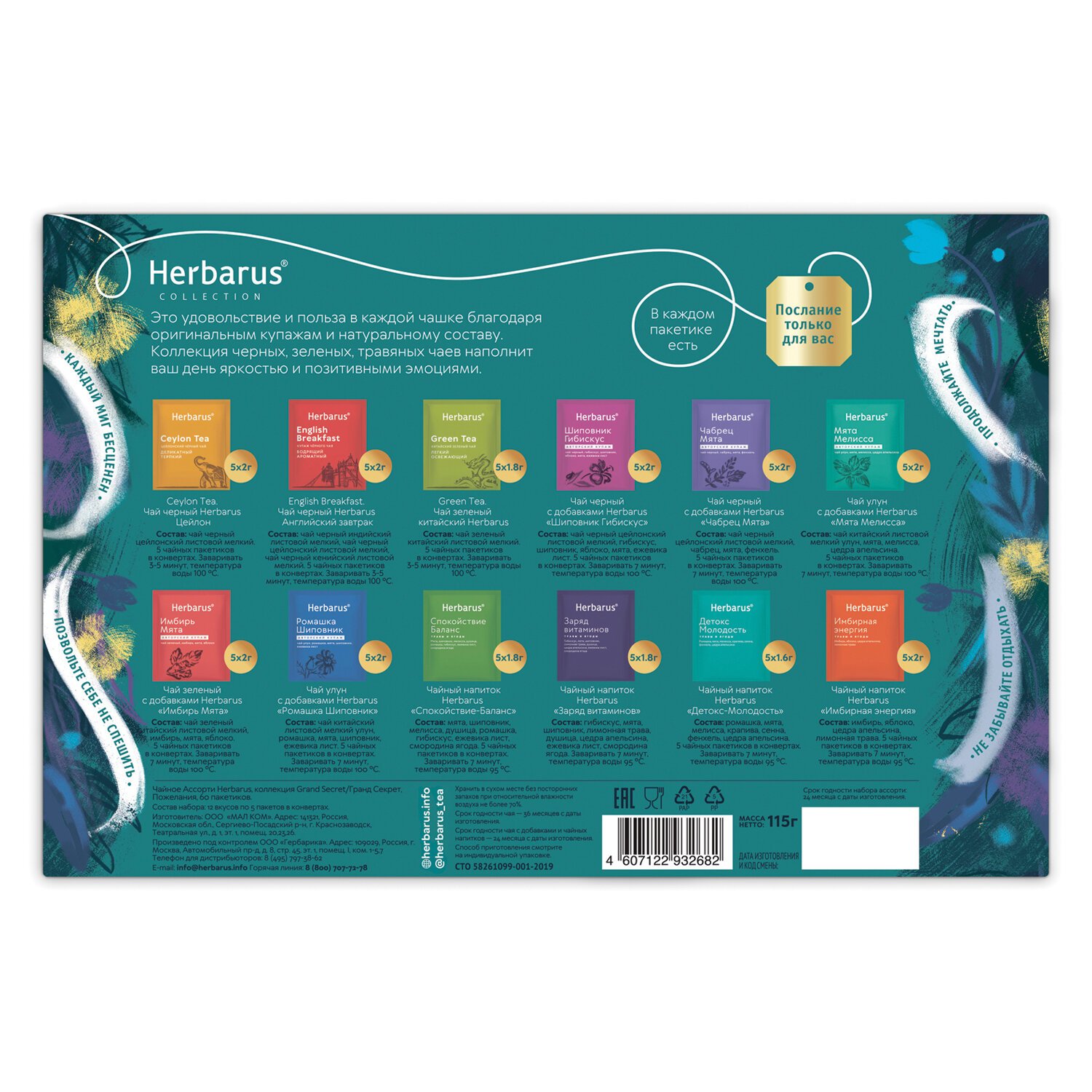 Чай HERBARUS "Grand Secret" ассорти 12 вкусов, НАБОР 60 пакетиков