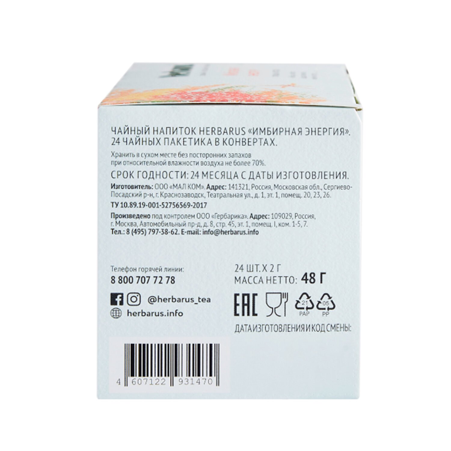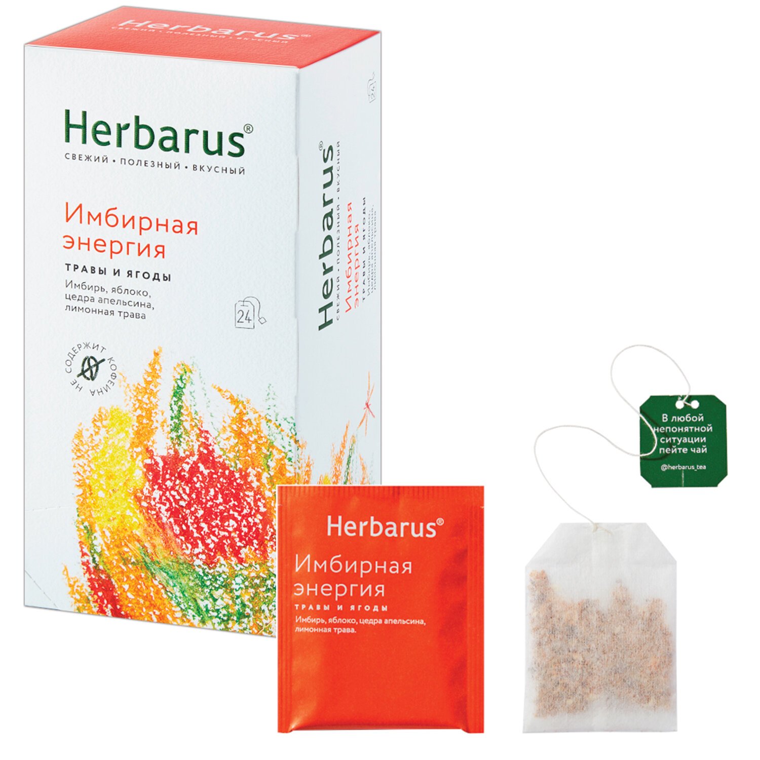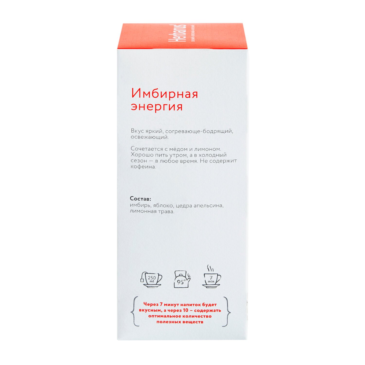 Чай HERBARUS "Имбирная Энергия" травяной, 24 пакетика в конвертах по 2 г