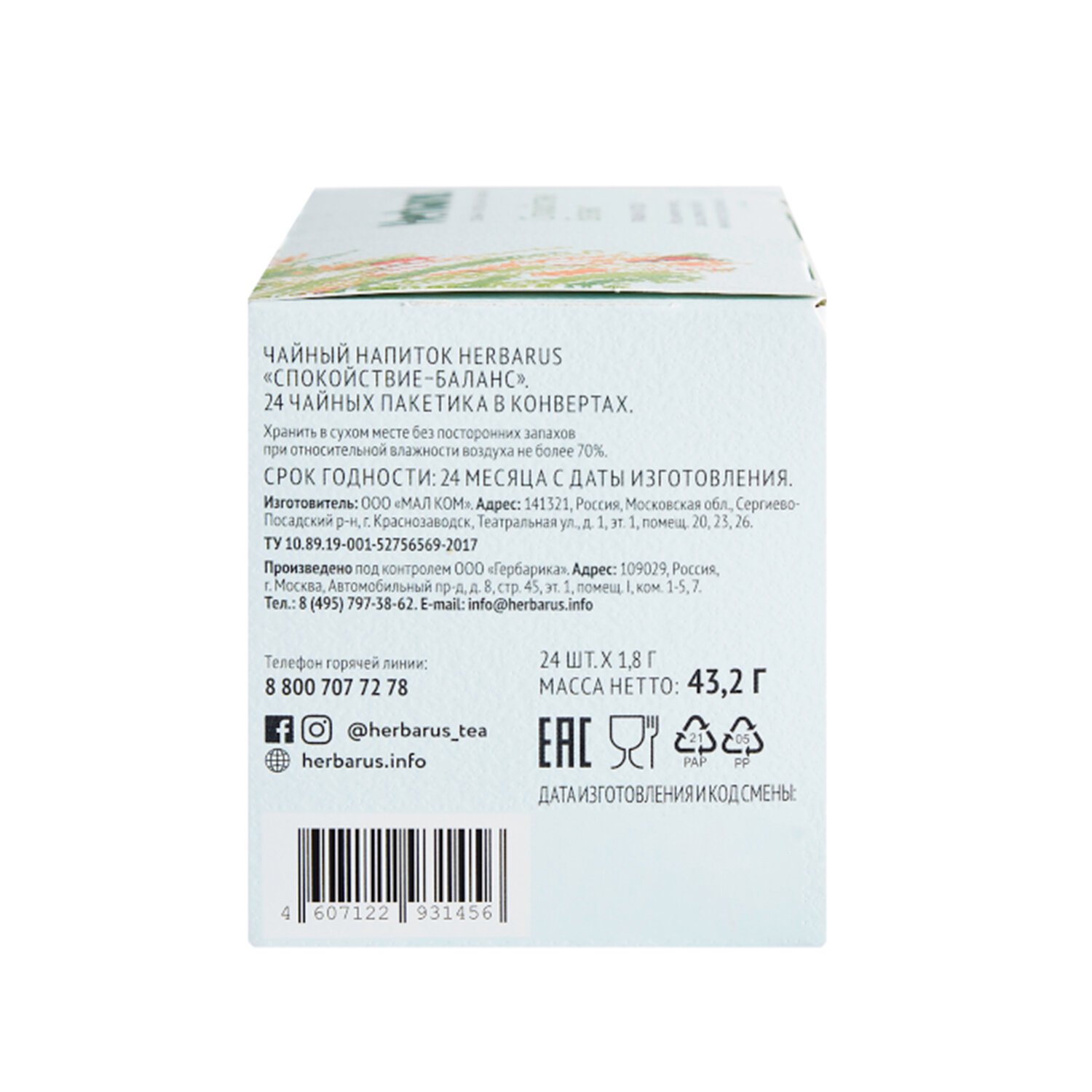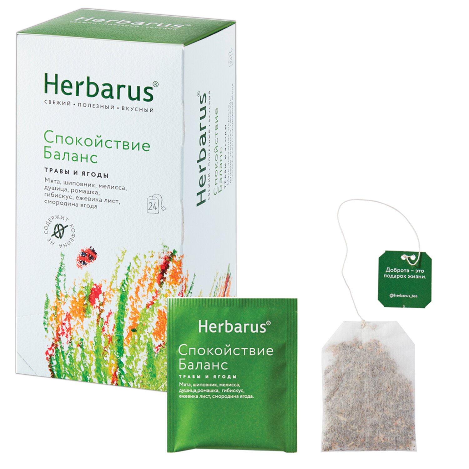 Чай HERBARUS "Спокойствие Баланс" травяной, 24 пакетика в конвертах по 1,8 г