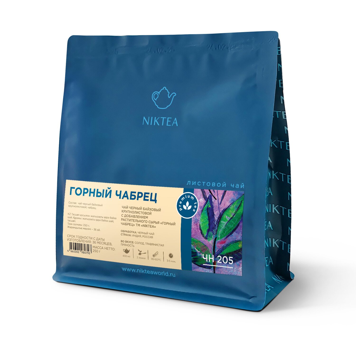 NIKTEA "Горный Чабрец" – пряный черный чай с листочками душистого горного чабреца. Букет зрелый, древесный, чуть маслянистый.