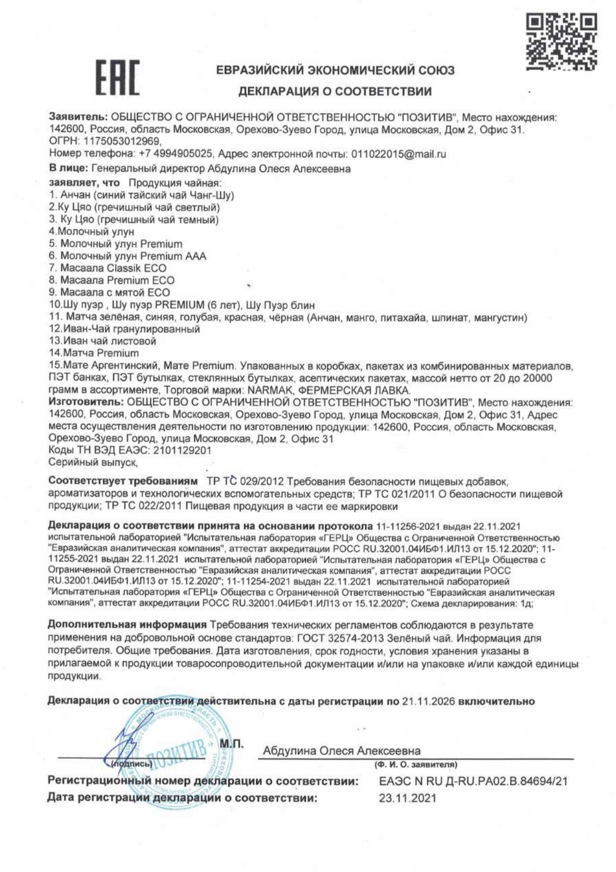 Чай листовой зеленый NARMAK "Манговый улун", 150 г