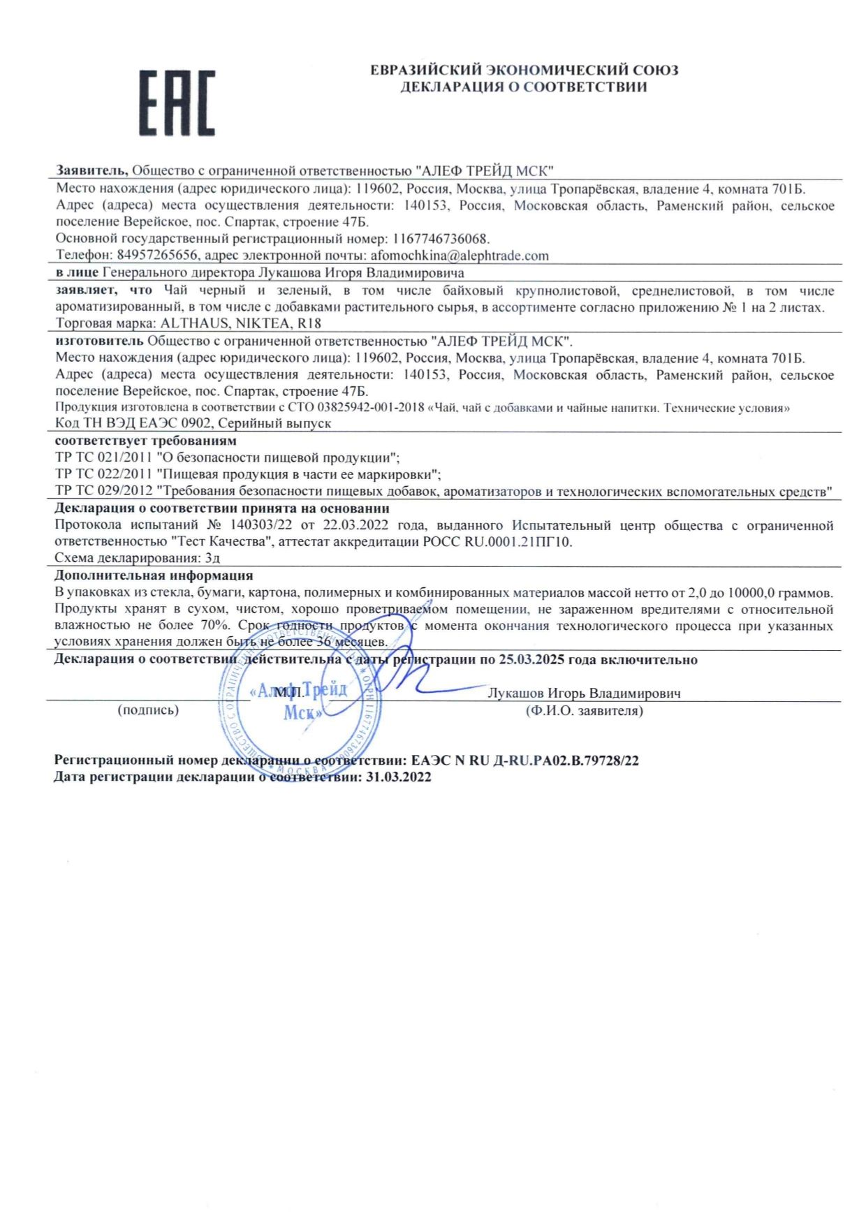 | Фирма-производитель | Алеф Трейд МСК |