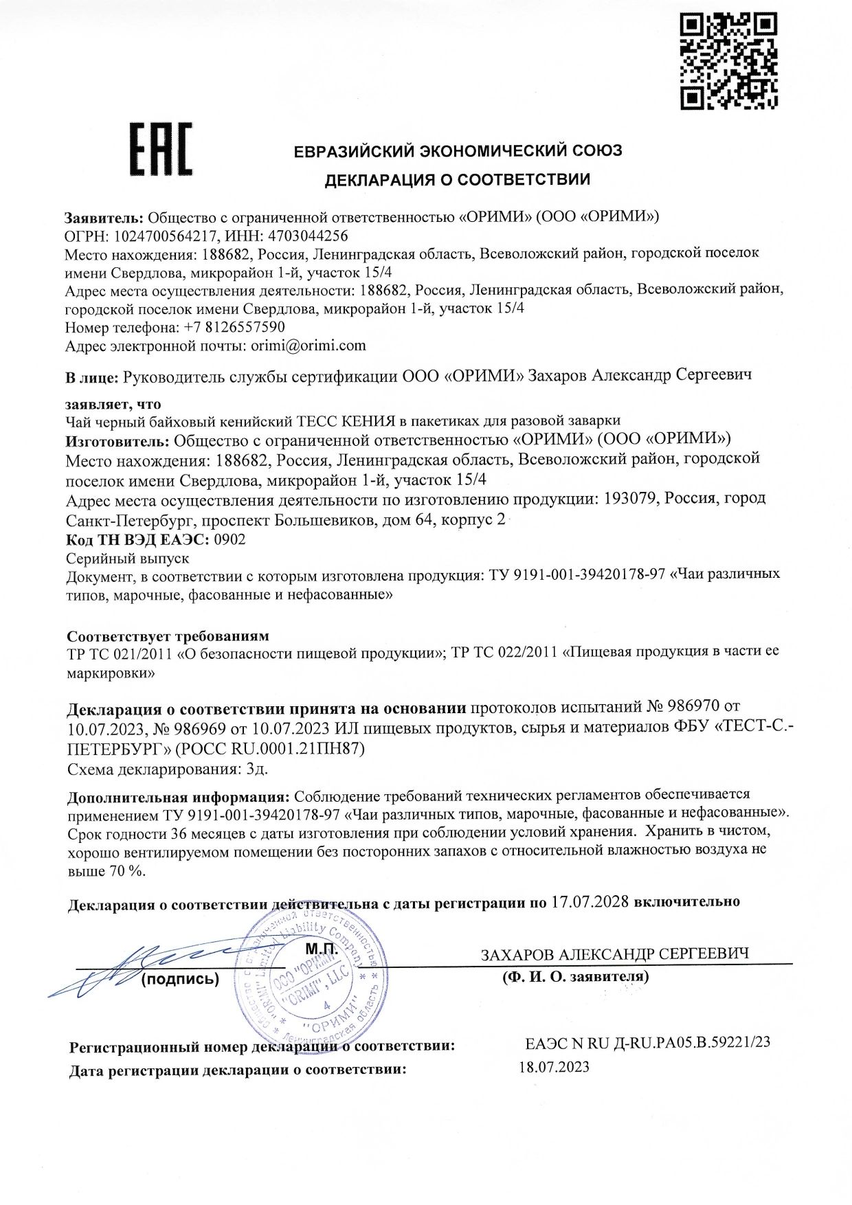 Чай TESS "Kenya" черный кенийский, 100 пакетиков в конвертах по 2 г, 1264-09