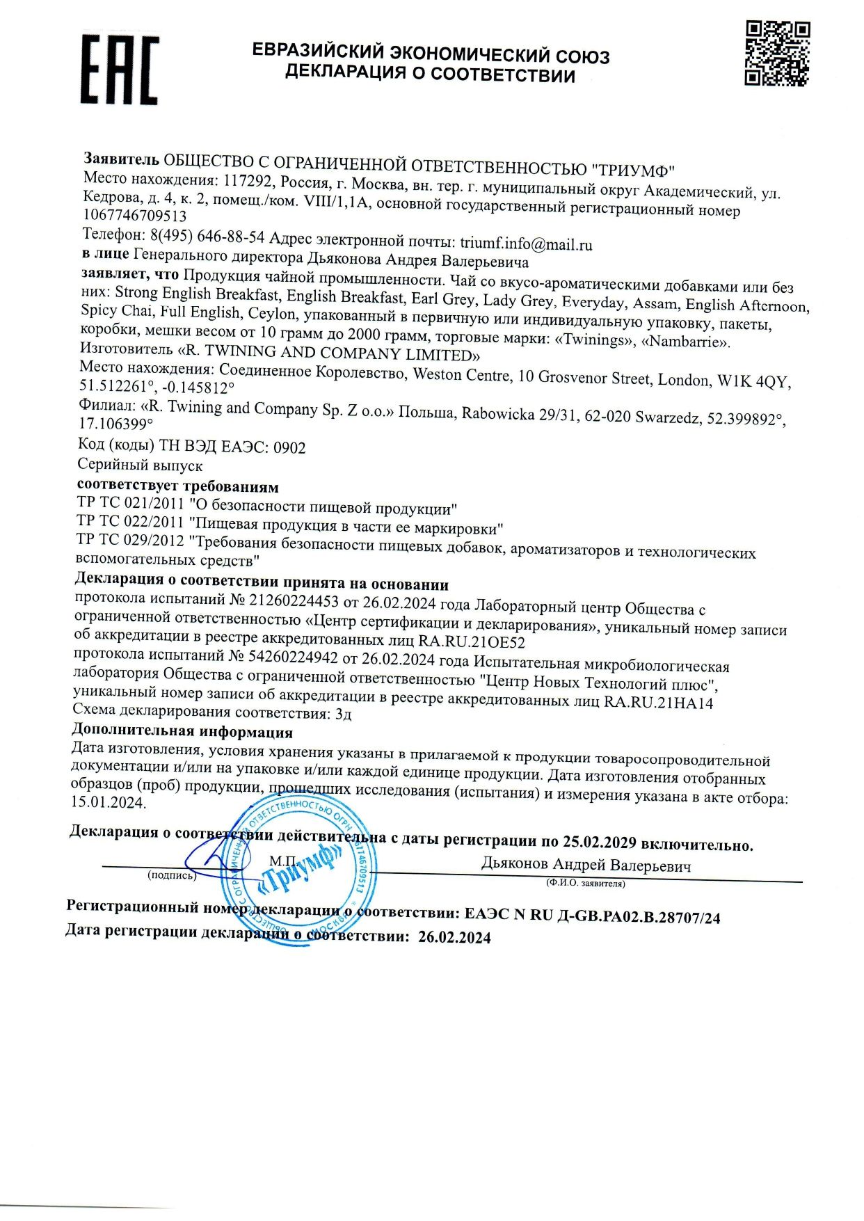 | Фирма-производитель | R. Twinings & Co. Ltd. |