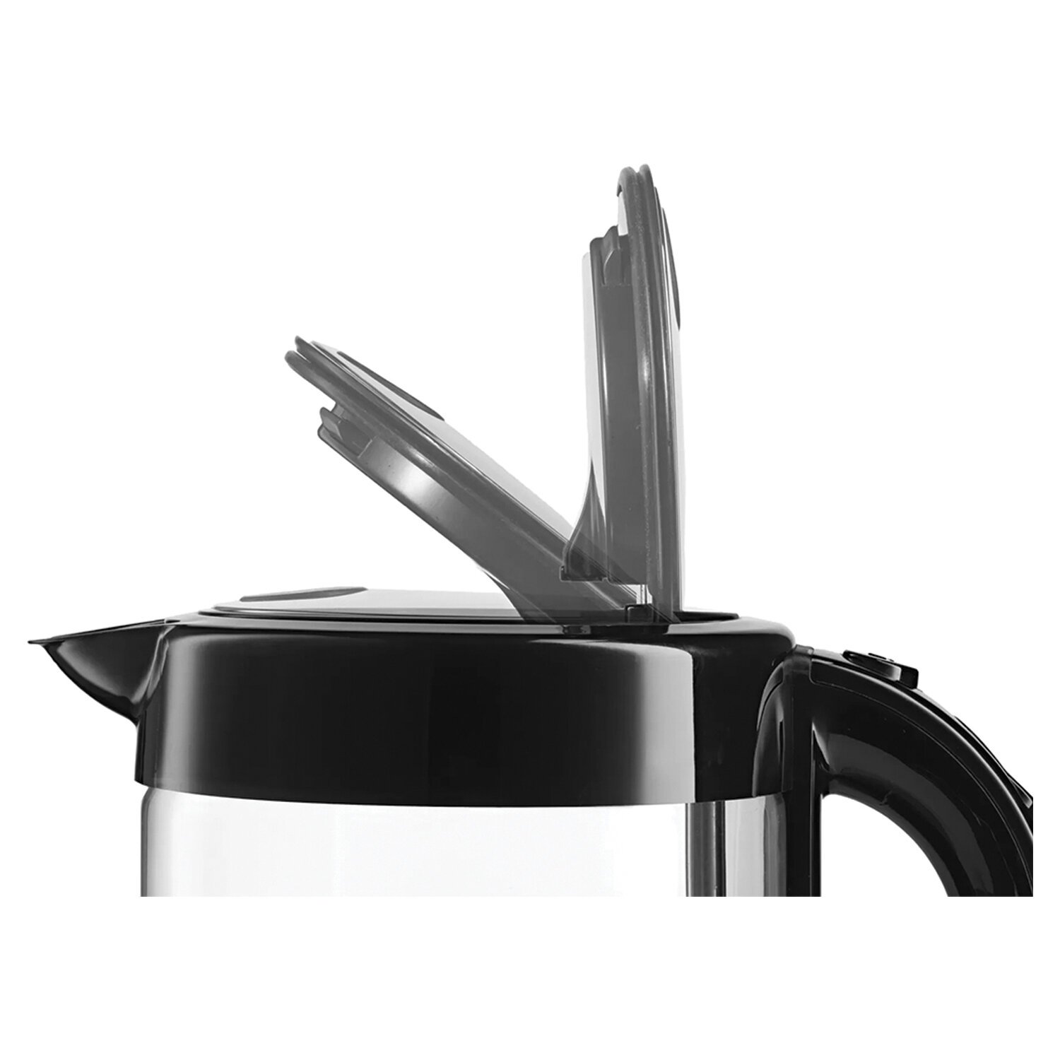 Эта модель выполнена из прочного термостойкого стекла, имеет объём 1.7 литра и оснащена закрытым нагревательным элементом, который обеспечивает быстрое и равномерное закипание воды без шума и перегрева.