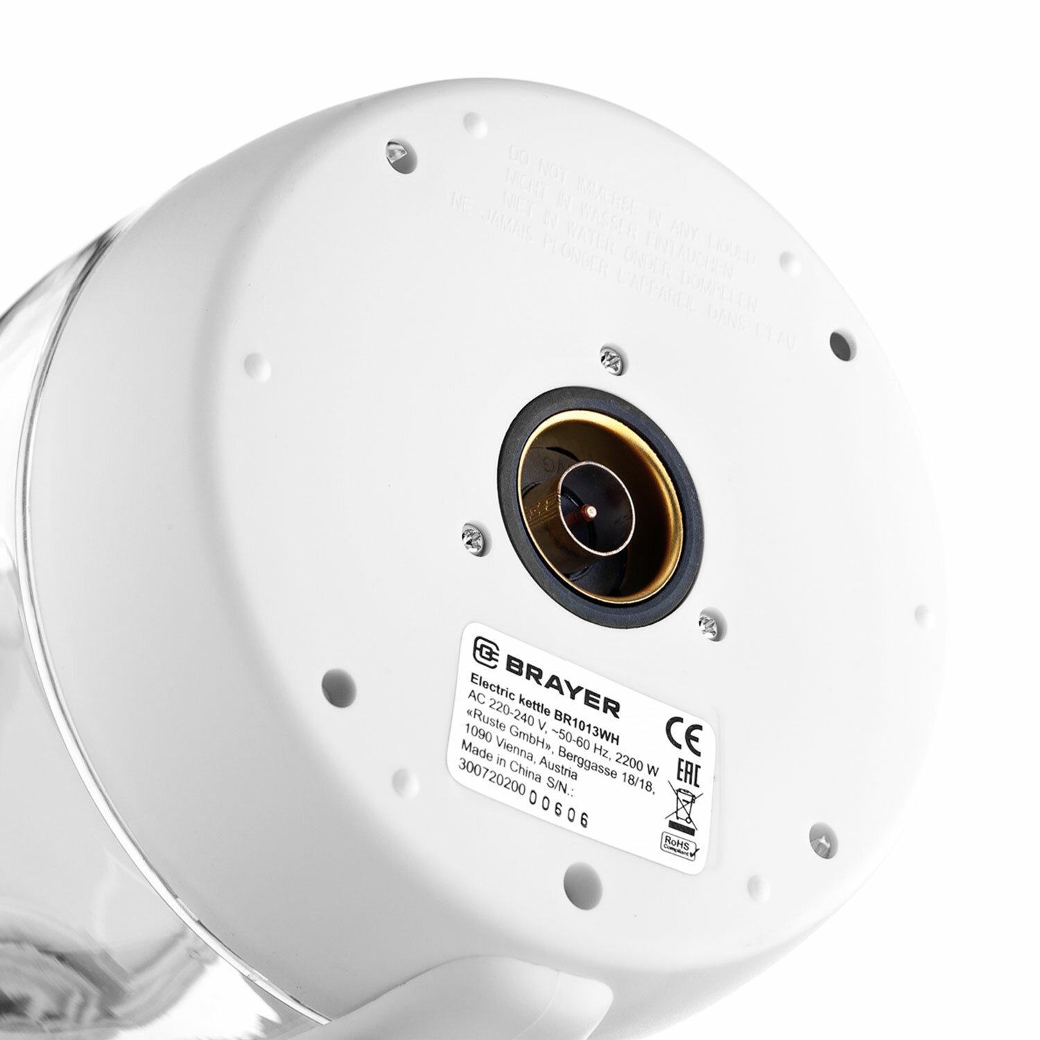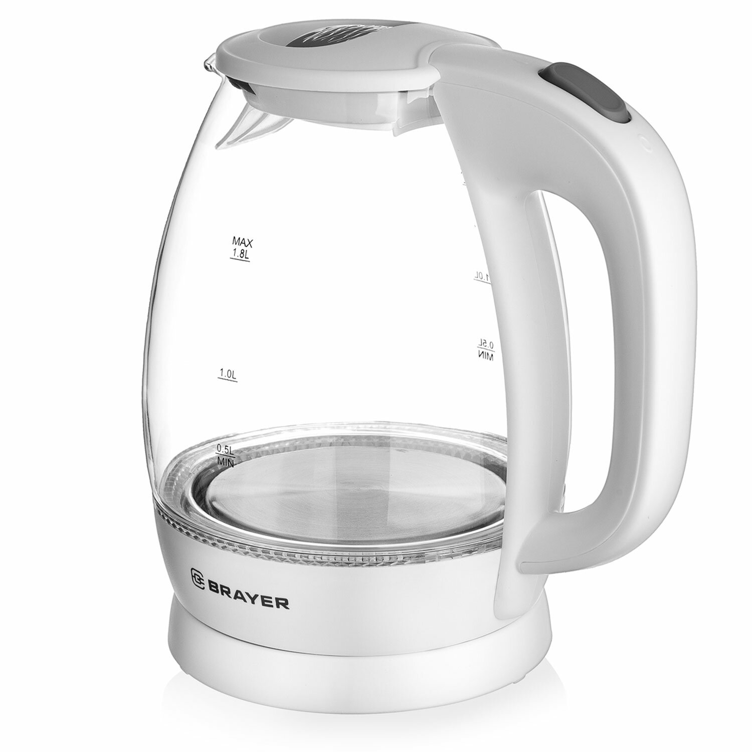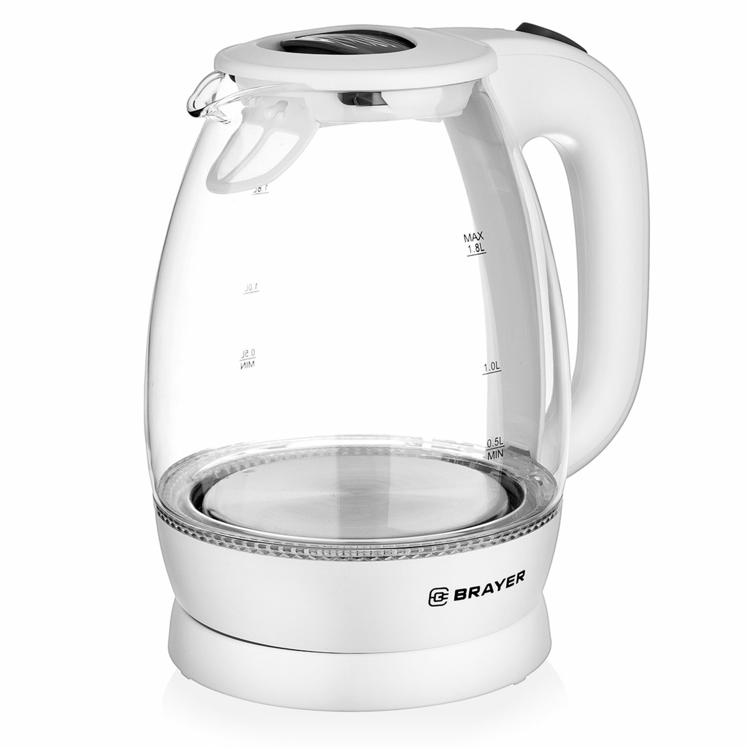 Чайник BRAYER BR1013WH, 1,8 л, 2200 Вт, закрытый нагревательный элемент, стекло, белый