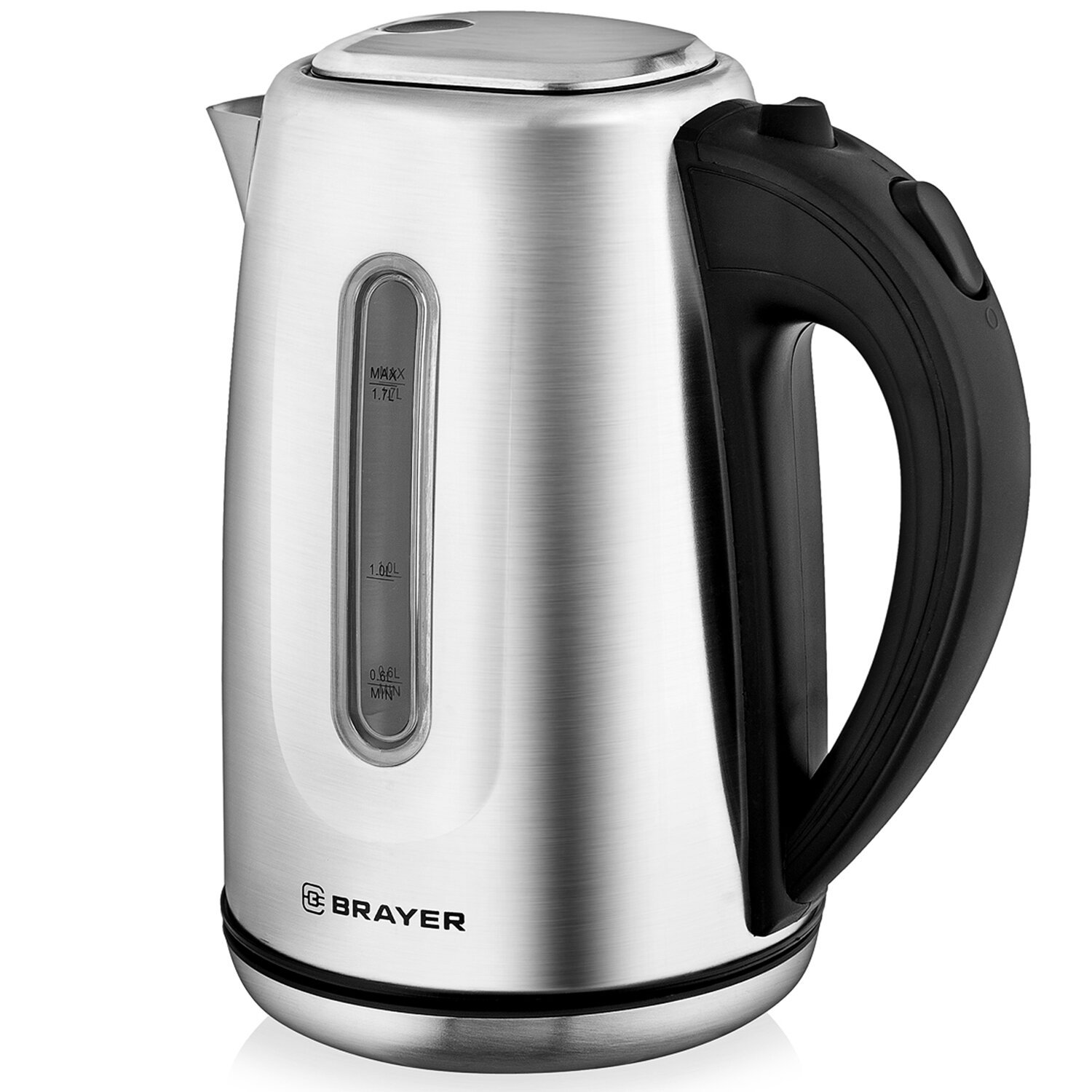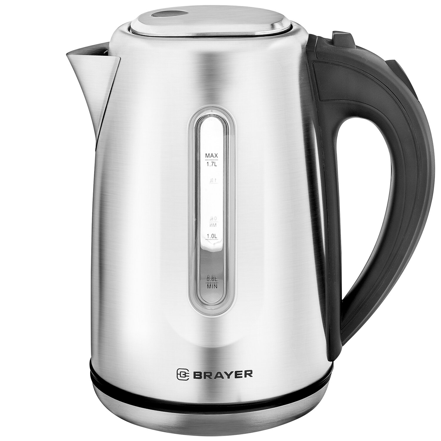Чайник BRAYER BR1014, 1,7 л, 2200 Вт, закрытый нагревательный элемент, сталь