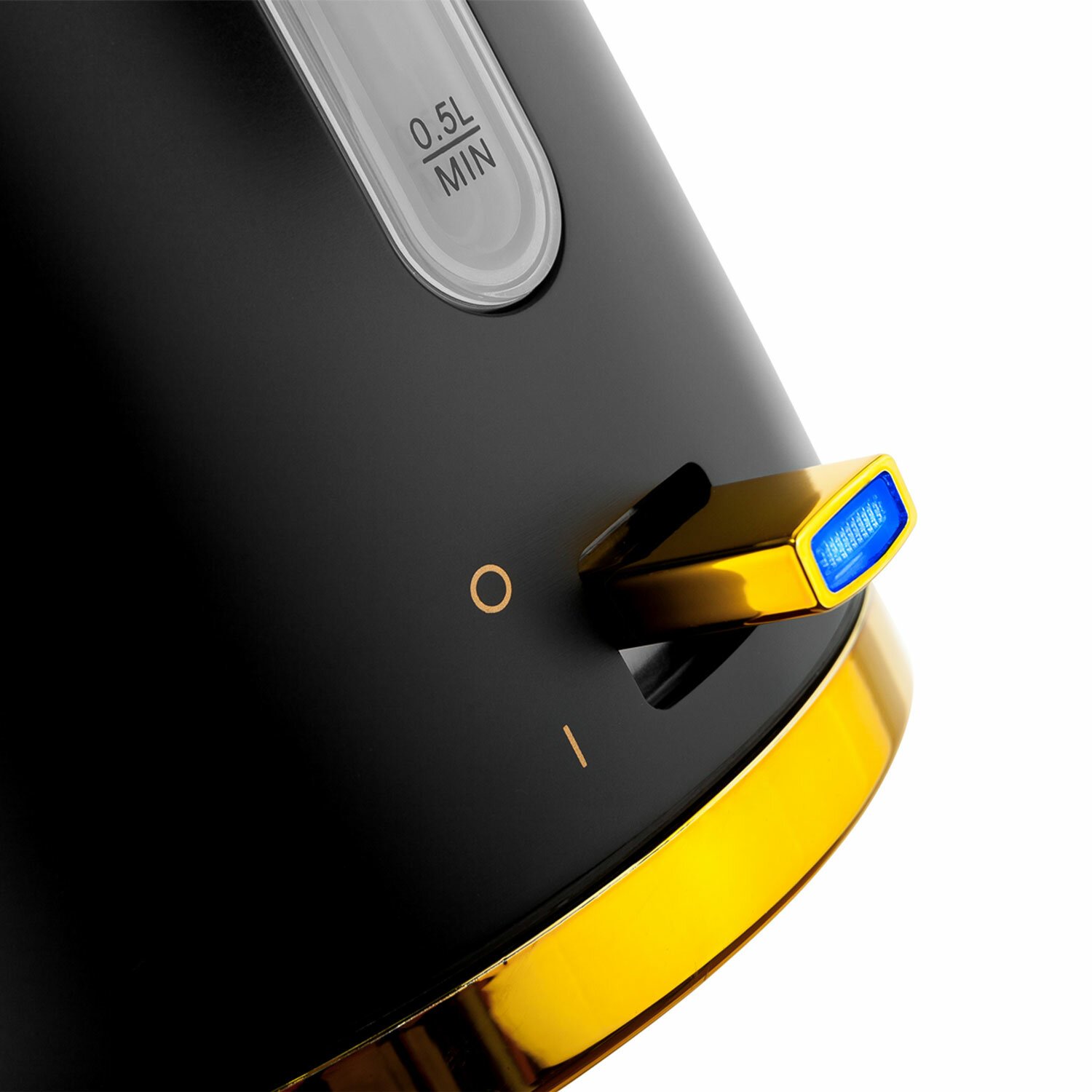 В основании удобно расположен переключатель включения и выключения. Для повышения безопасности, чайник оснащен функцией автоматического выключения. При отсутствии воды он также автоматически выключится.