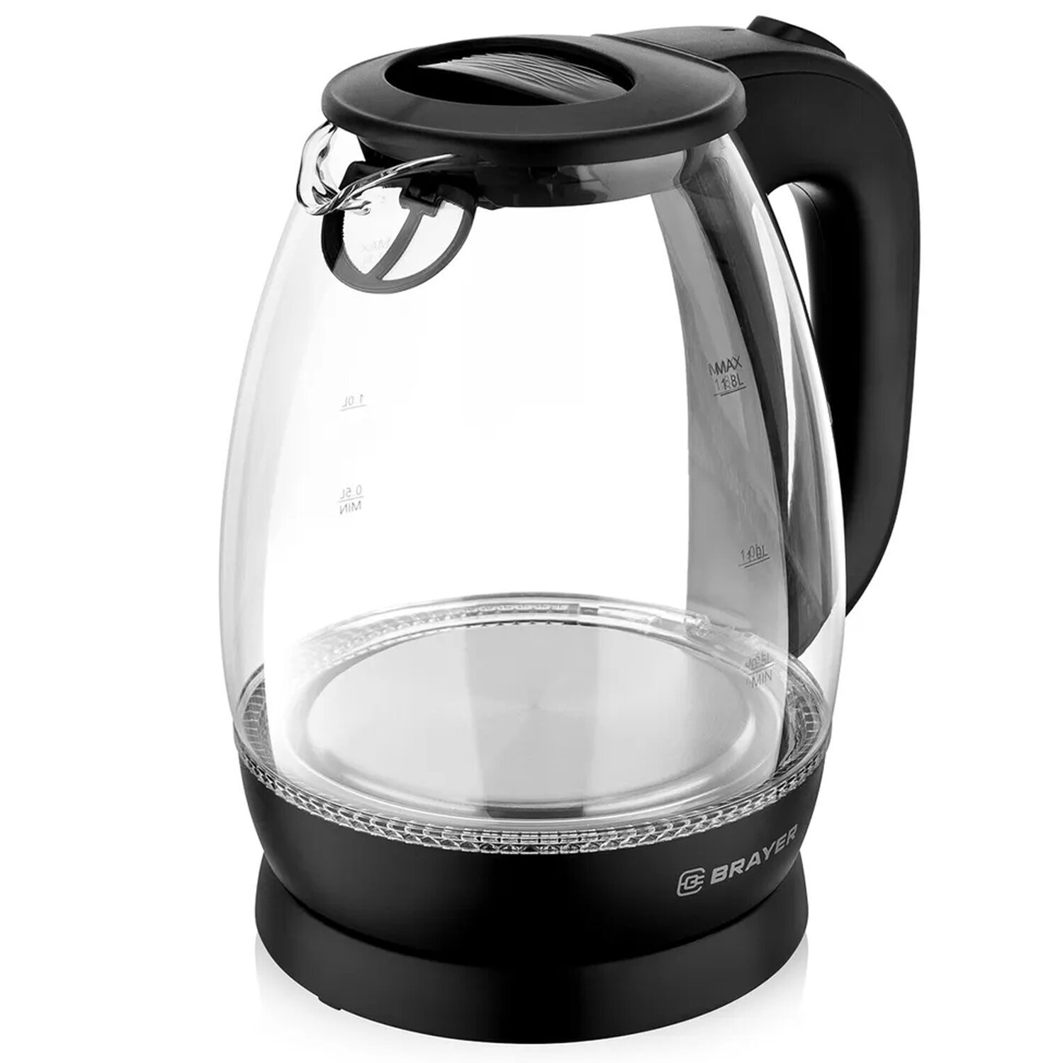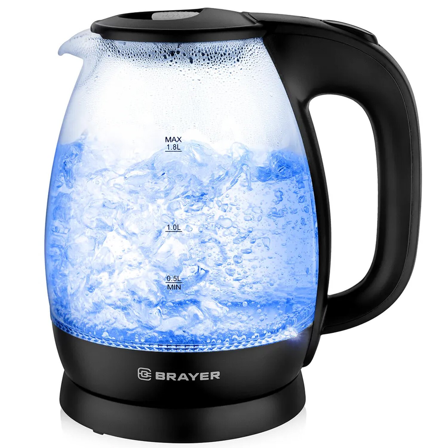 Чайник BRAYER BR1026, 1,8 л, 2200 Вт, закрытый нагревательный элемент, стекло, черный