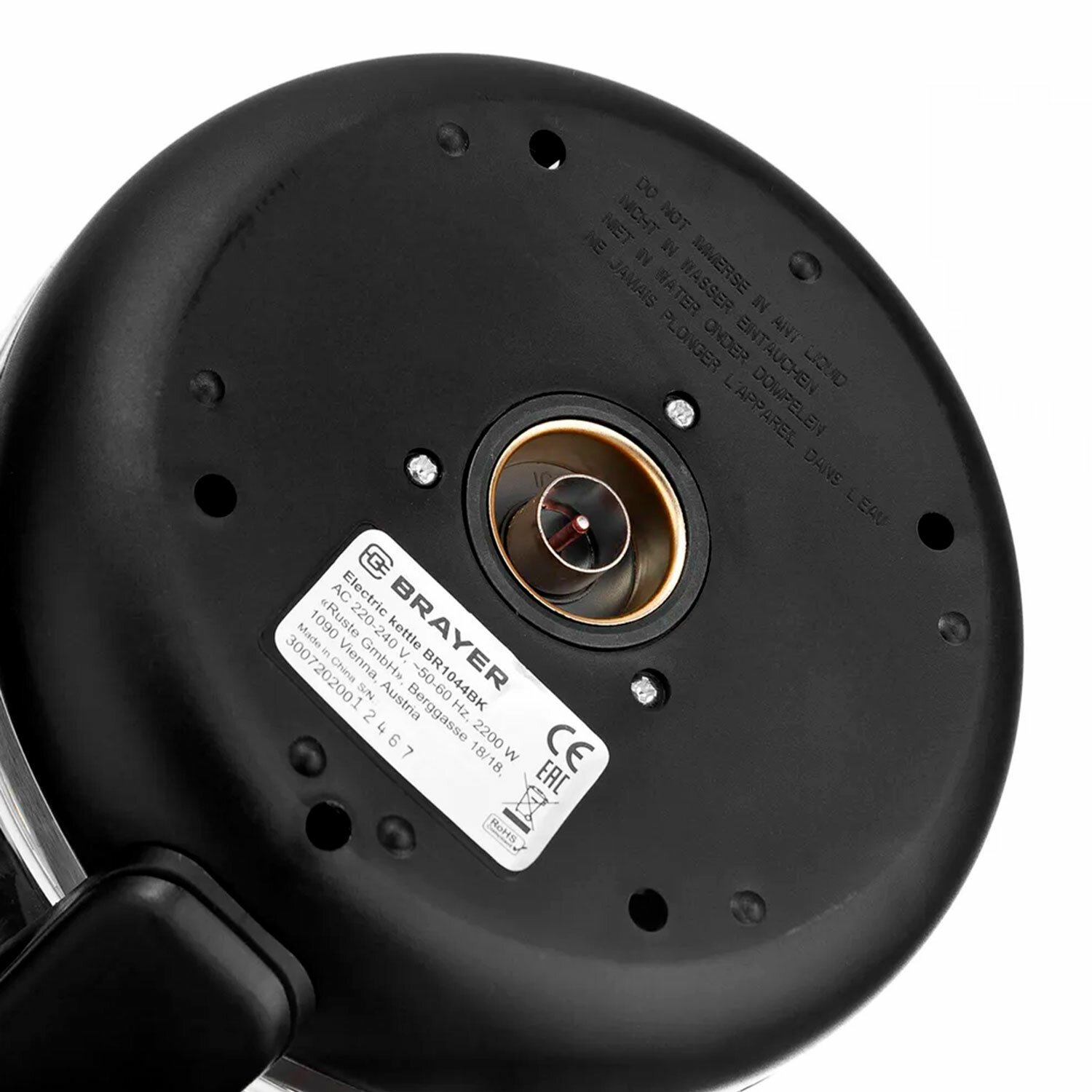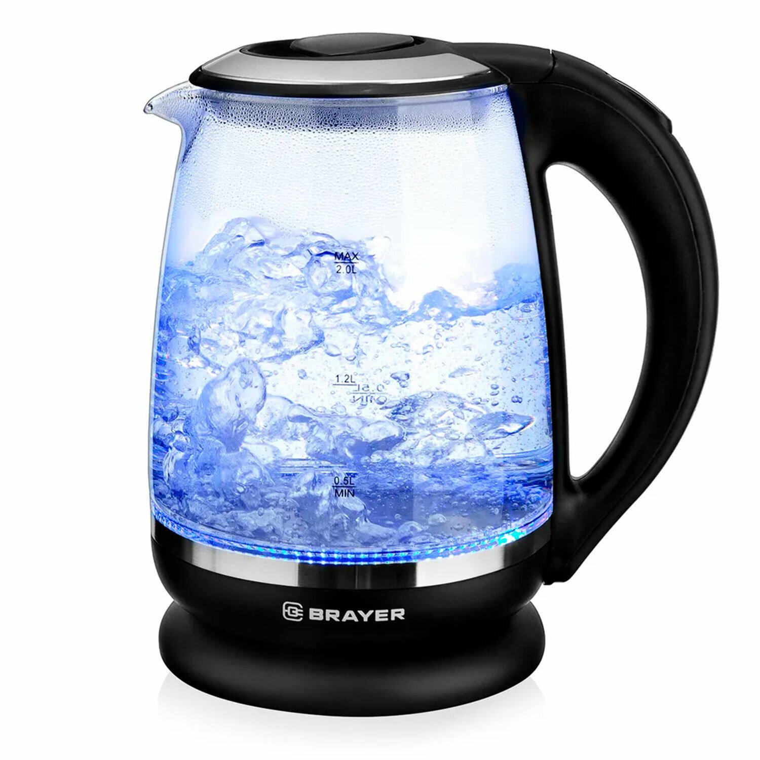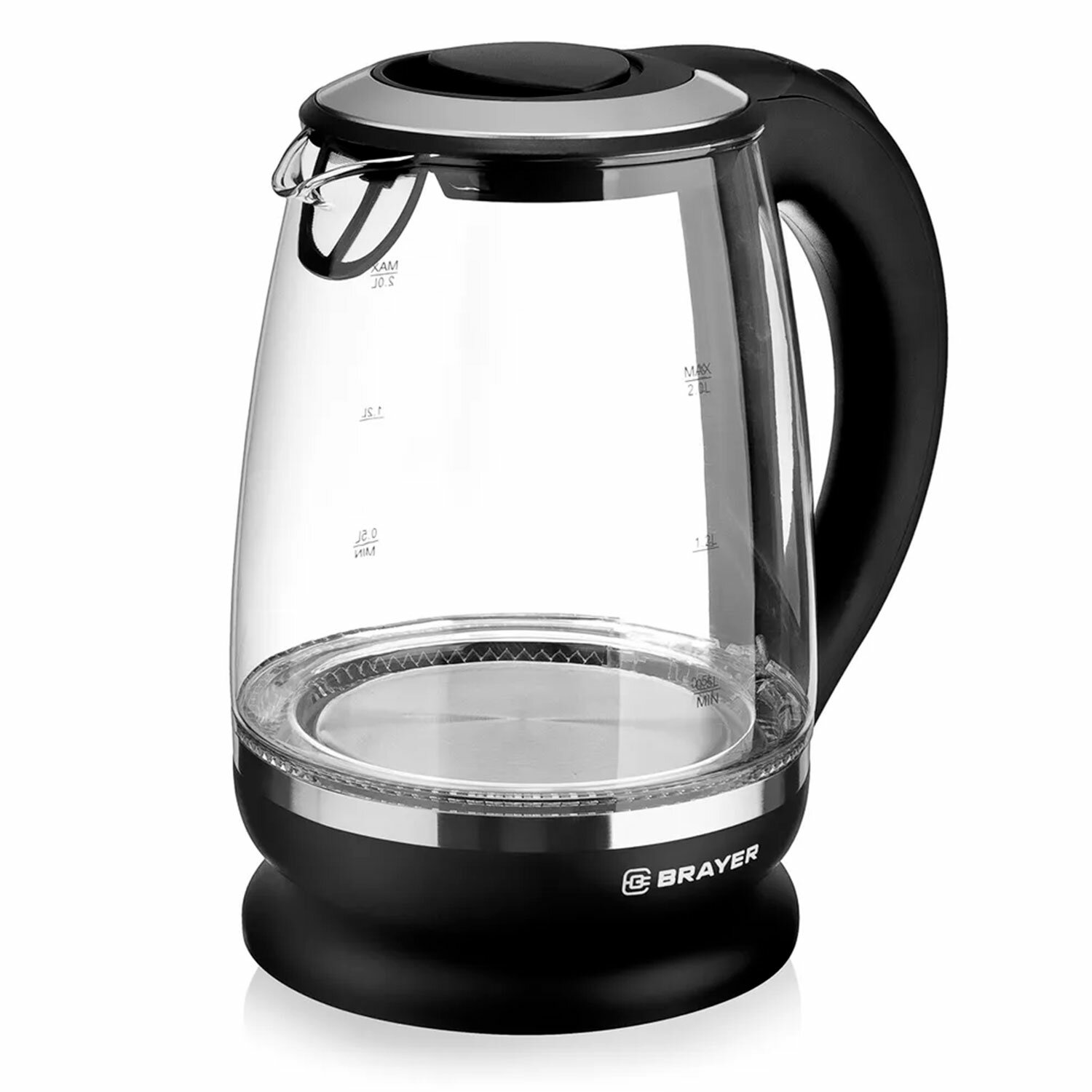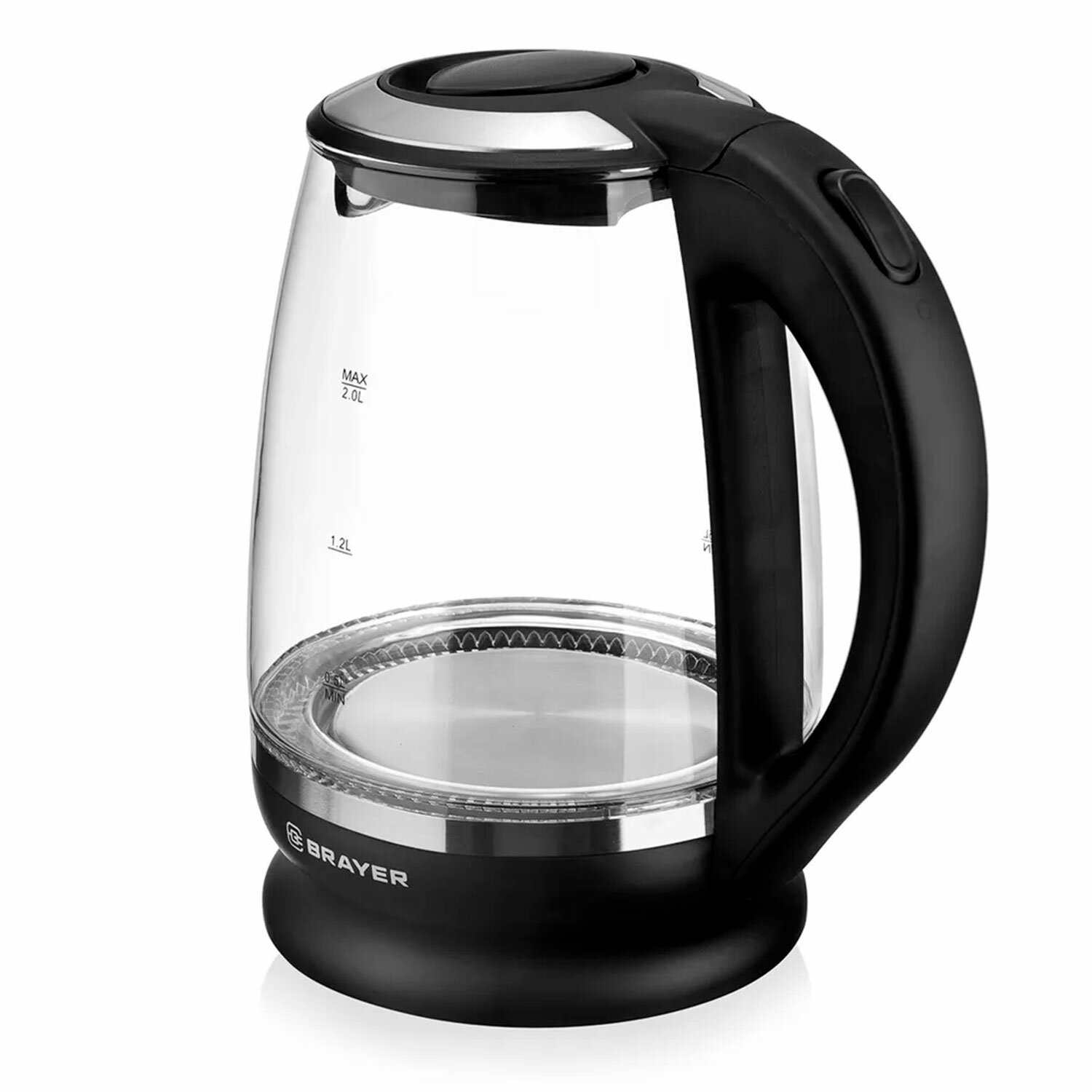 Чайник BRAYER BR1044BK, 2 л, 2200 Вт, закрытый нагревательный элемент, стекло, черный