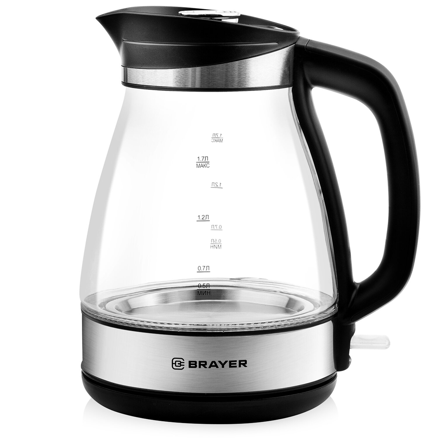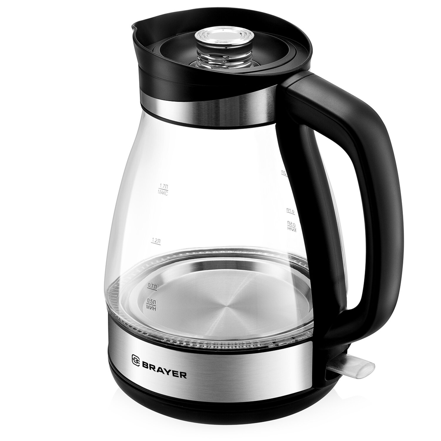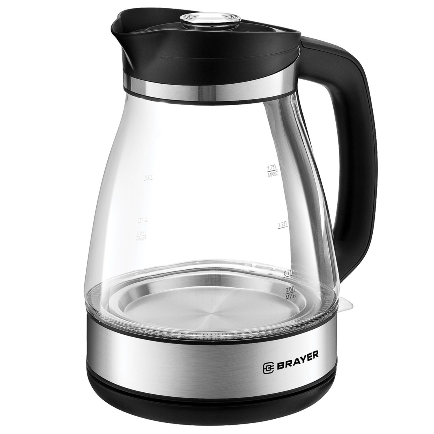 Чайник BRAYER BR1048, 1,7л, 2200 Вт, закрытый нагревательный элемент, стекло, черный