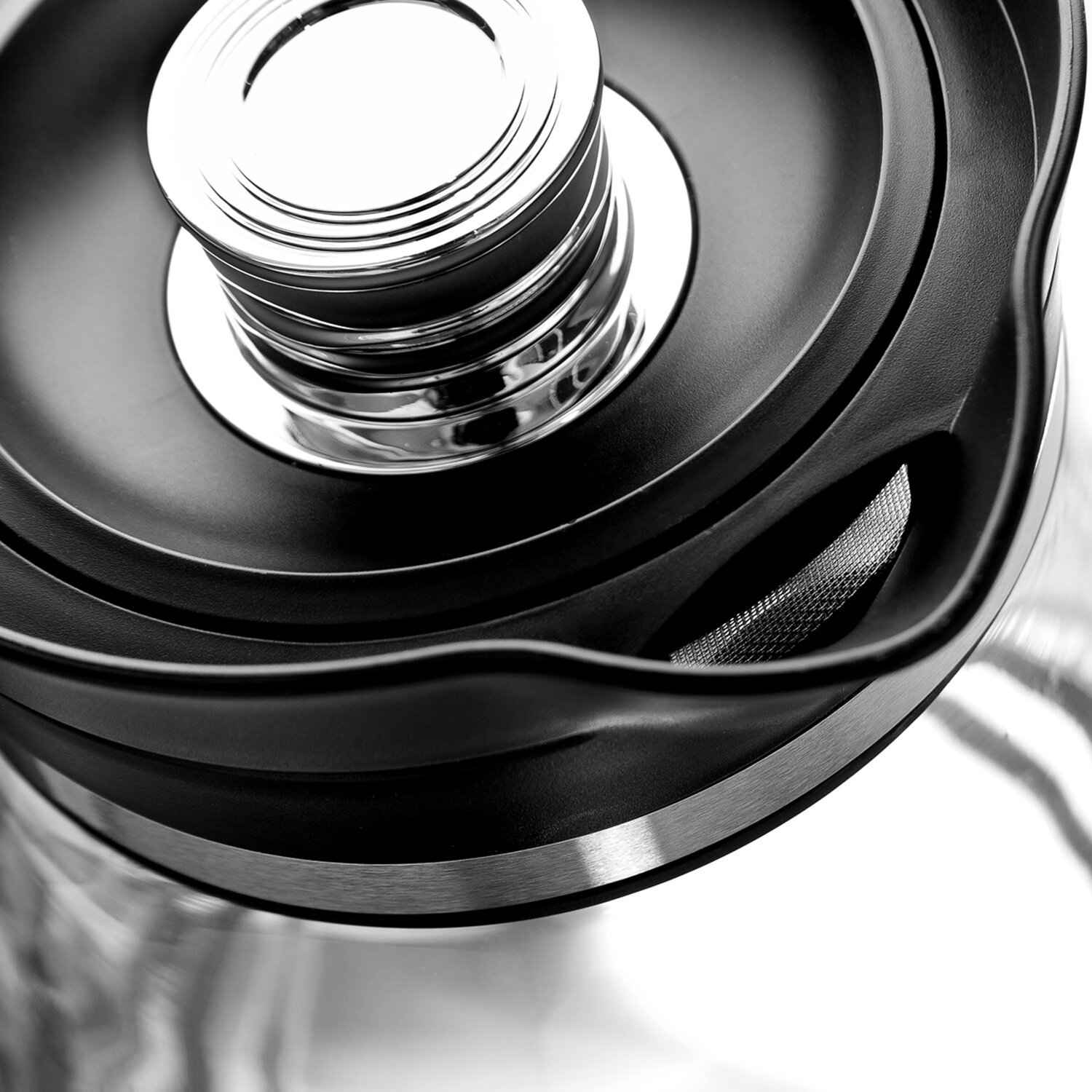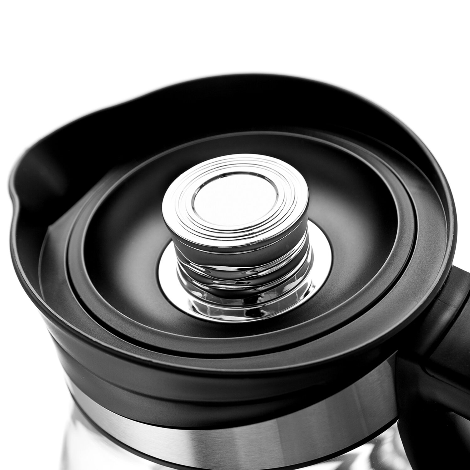 Корпус изготовлен из высокопрочного термостойкого стекла. В носик встроен фильтр для защиты от накипи.