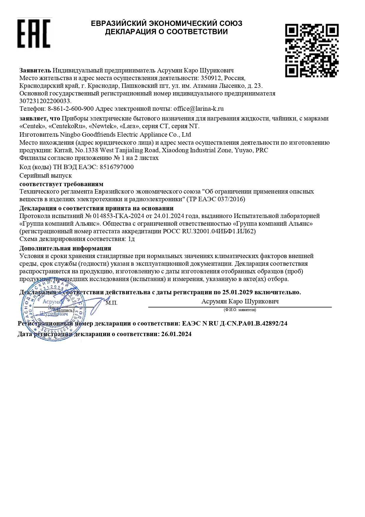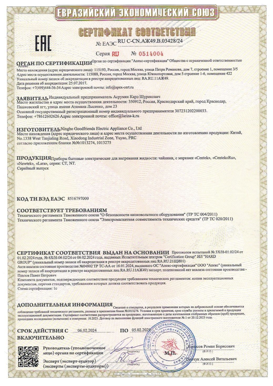 Чайник CENTEK CT-1068 – качественный и надежный прибор объемом 2 л и мощностью 2000 Вт. Кипятит воду за несколько минут. Имеет скрытый нагревательный элемент для безопасного нагревания воды.