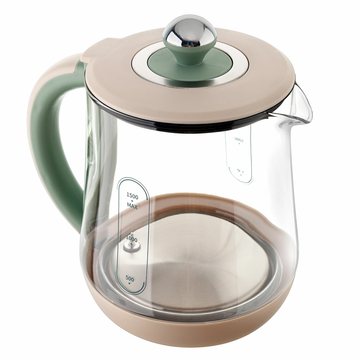 Чайник KITFORT КТ-617, 1,5 л, 2200 Вт, закрытый нагревательный элемент, стекло, серебристый, KT-617