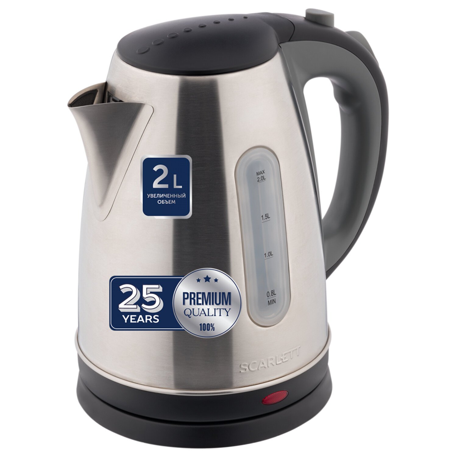 Чайник SCARLETT SC-EK21S97, 2 л, 2200 Вт, закрытый нагревательный элемент, сталь