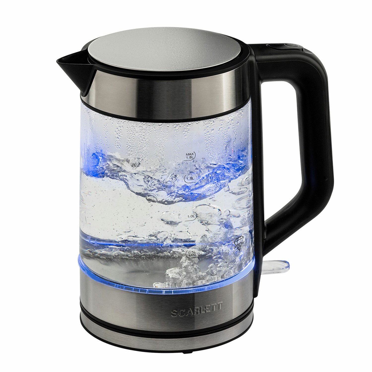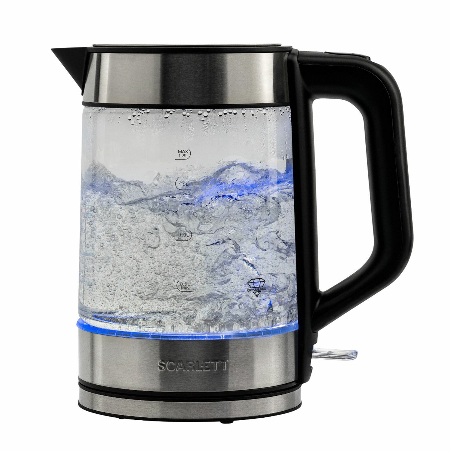 Чайник SCARLETT SC-EK27G101, 1,8 л, 2200 Вт, закрытый нагревательный элемент, стекло, черный