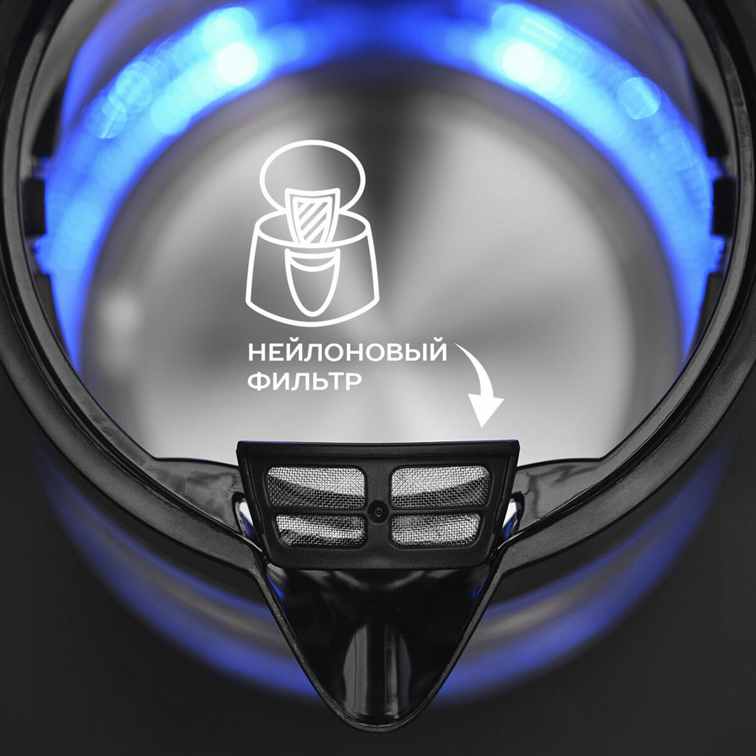 Чайник BRAYER BR1026, 1,8 л, 2200 Вт, закрытый нагревательный элемент, стекло, черный