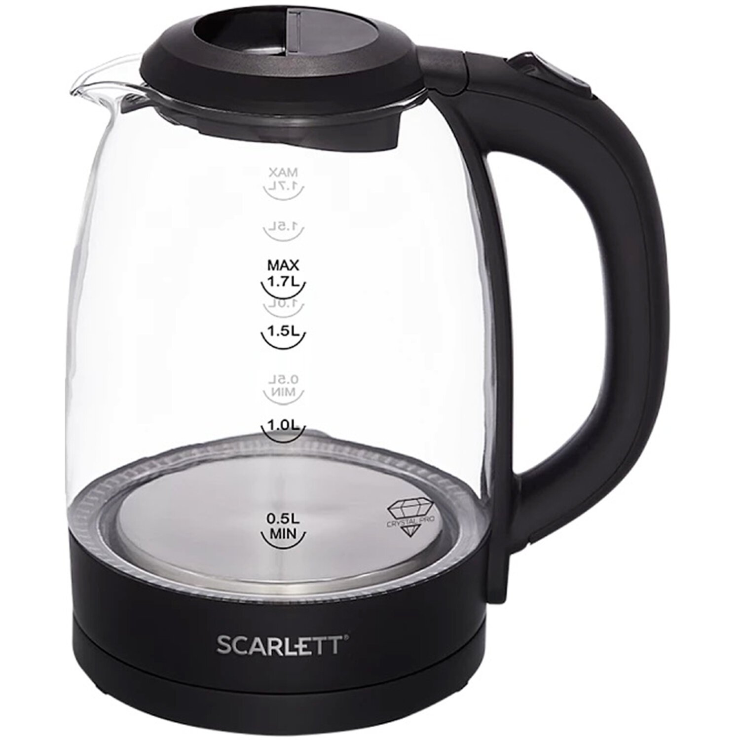 Чайник SCARLETT SC-EK27G11, 1,7 л, 2200 Вт, закрытый нагревательный элемент, стекло, черный