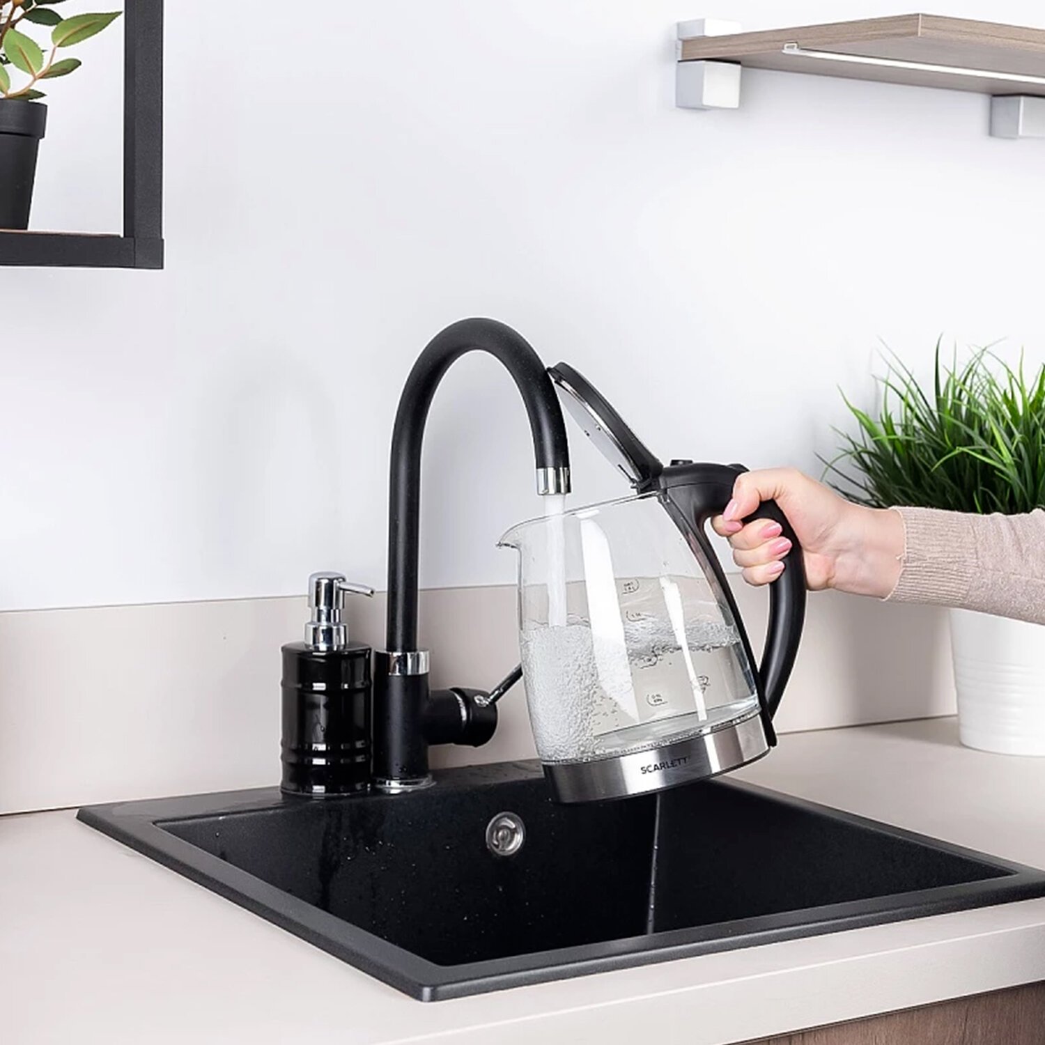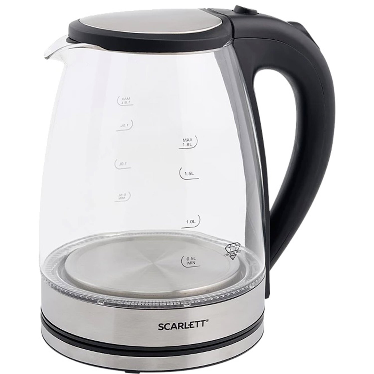 Чайник SCARLETT SC-EK27G88, 1,8 л, 1800 Вт, закрытый нагревательный элемент, стекло, черный