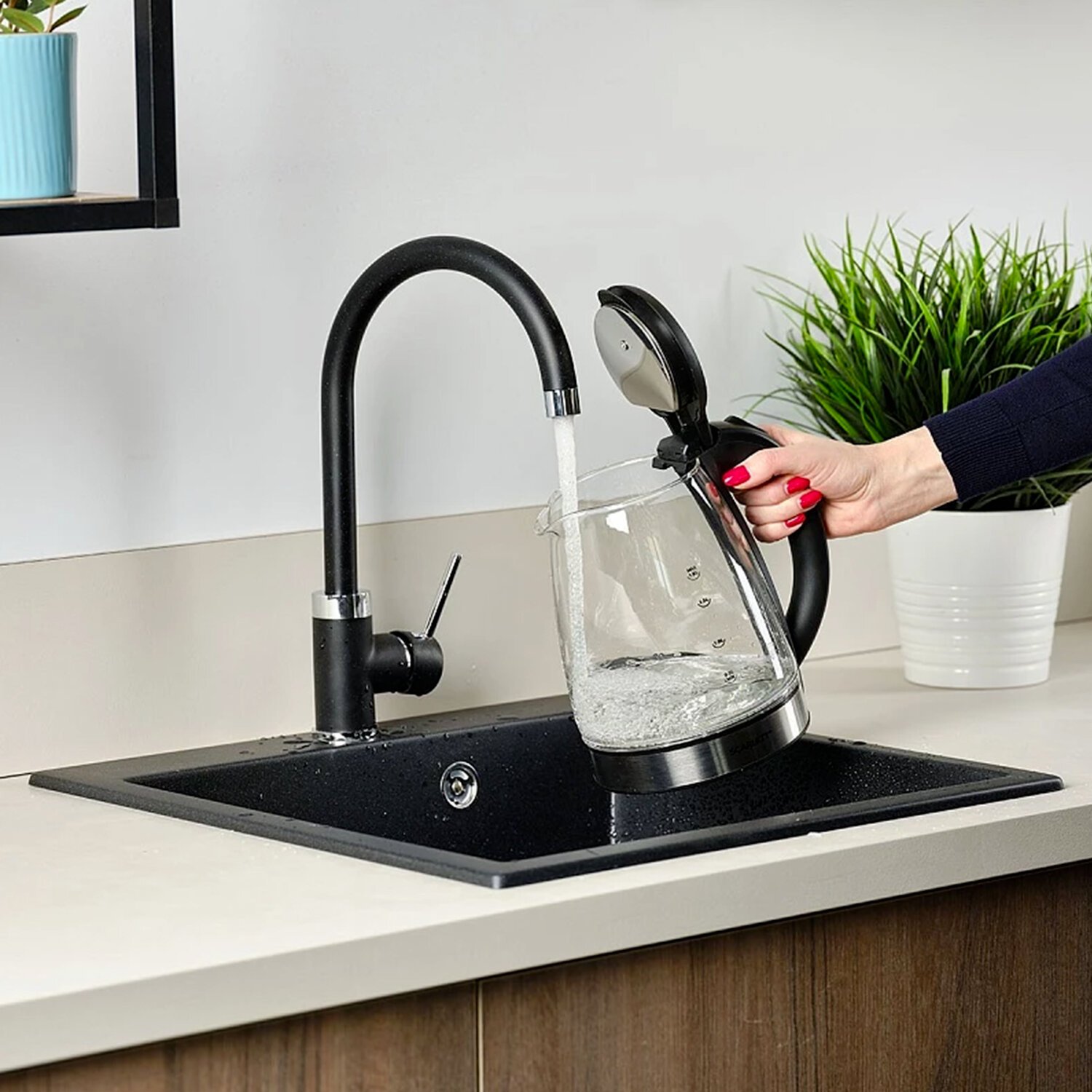 Чайник BRAYER BR1026, 1,8 л, 2200 Вт, закрытый нагревательный элемент, стекло, черный