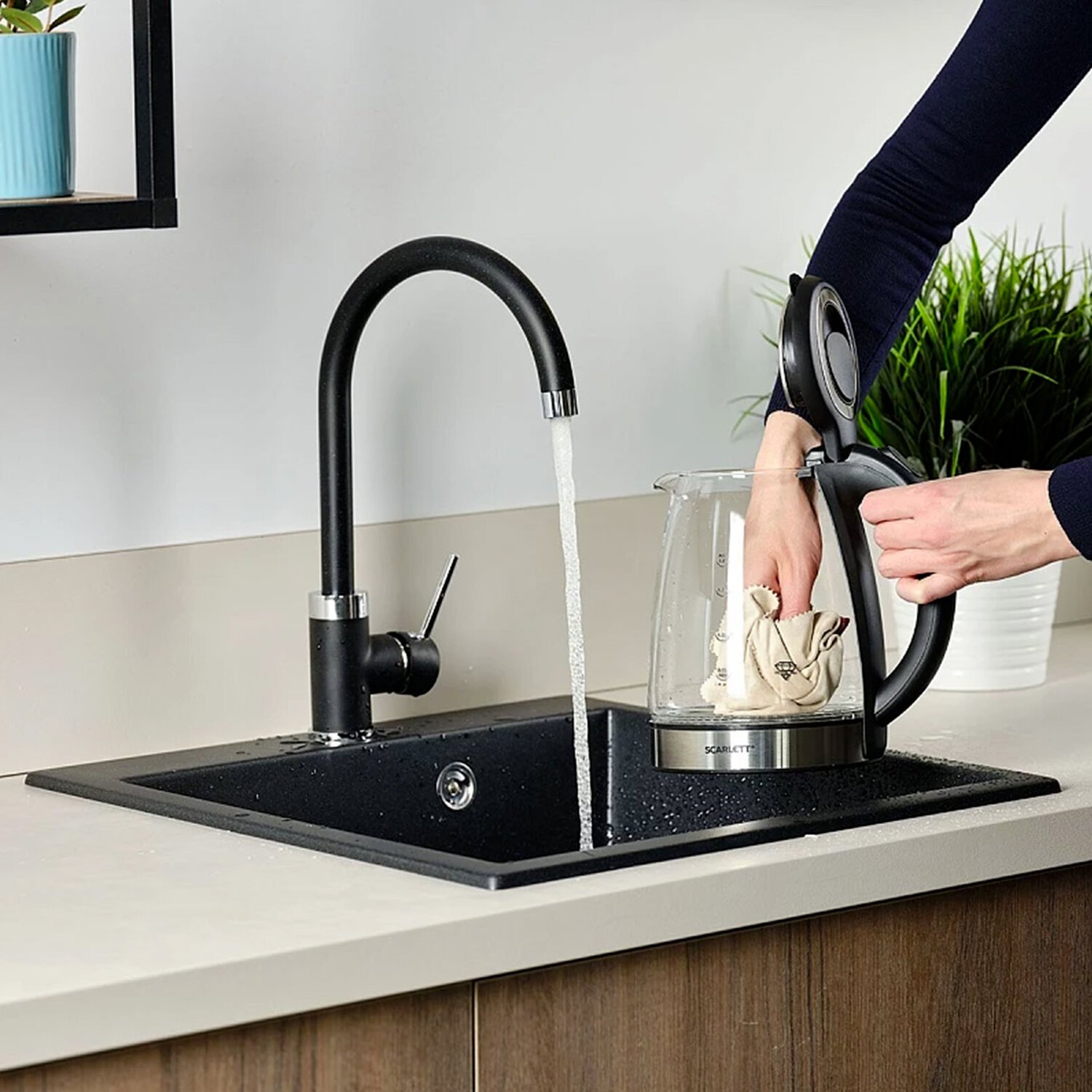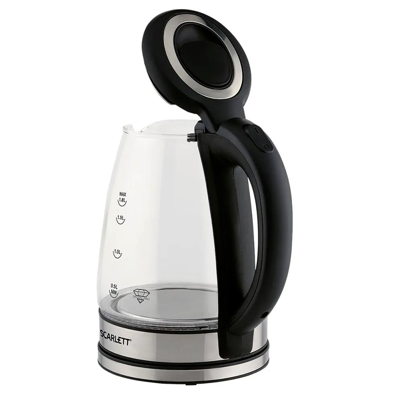 Чайник SCARLETT SC-EK27G88, 1,8 л, 1800 Вт, закрытый нагревательный элемент, стекло, черный