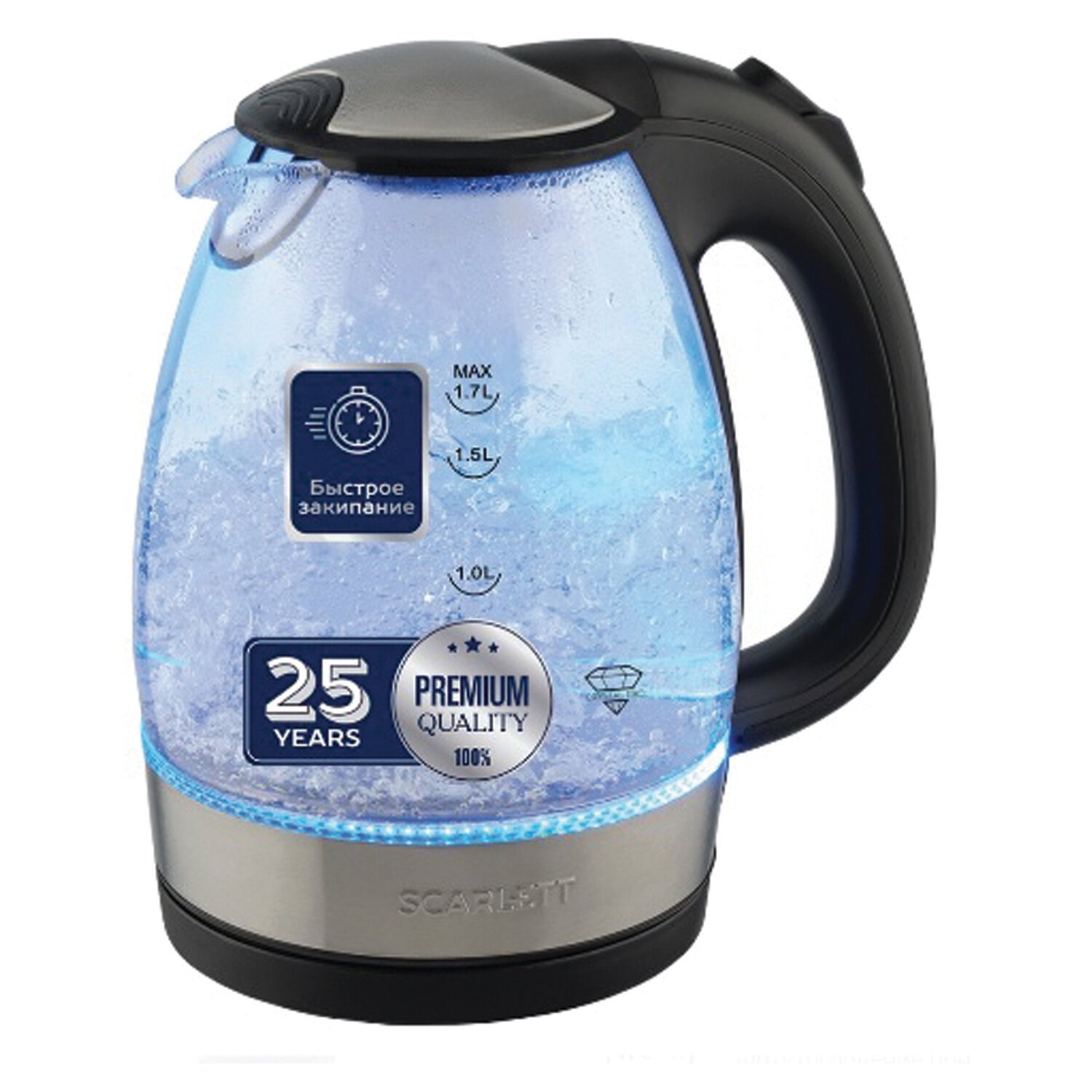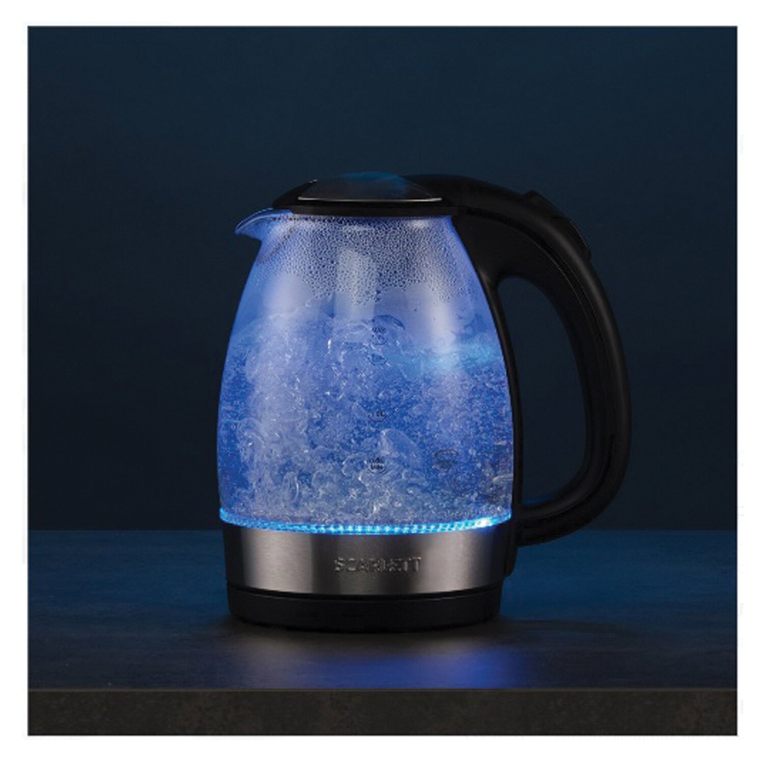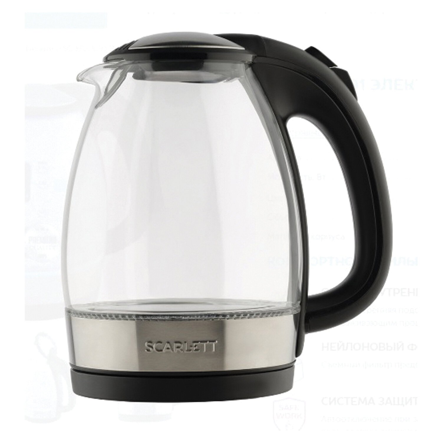 Чайник SCARLETT SC-EK27G91, 1,7 л, 2200 Вт, закрытый нагревательный элемент, стекло, черный