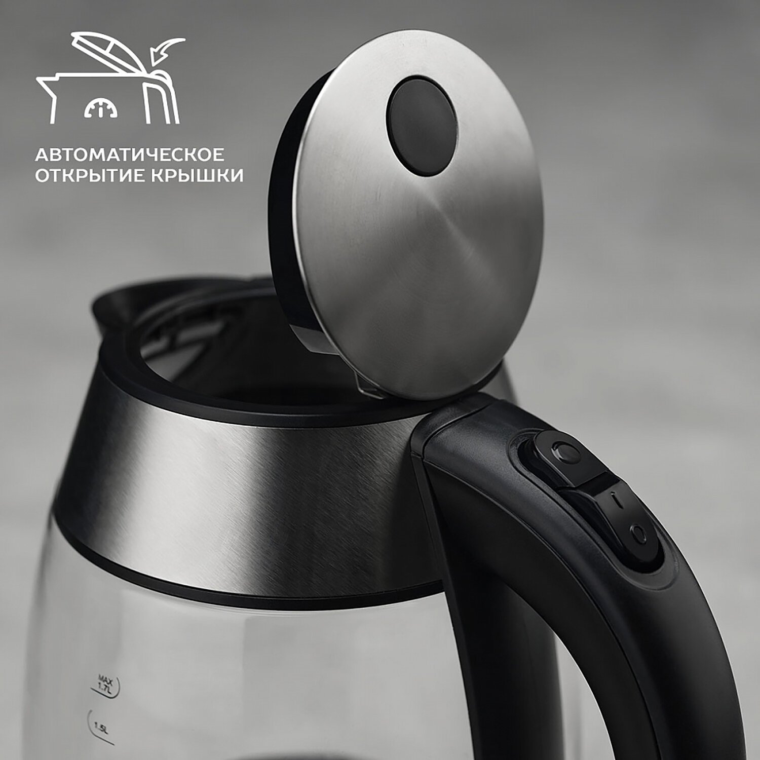 Электрический чайник SC-EK27G94 оснащён автоматической системой открытия крышки.