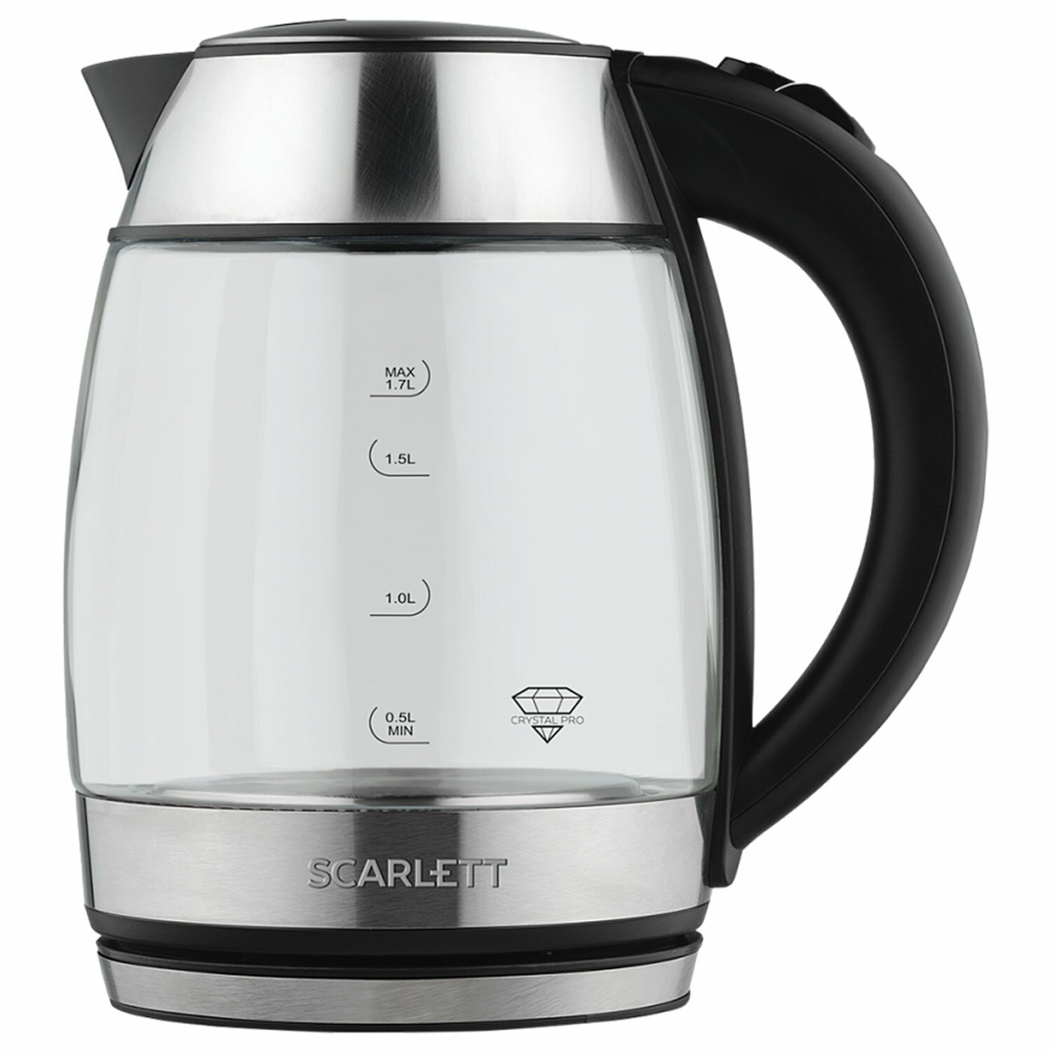 Чайник SCARLETT SC-EK27G94, 1,7 л, 2200 Вт, закрытый нагревательный элемент, стекло, черный