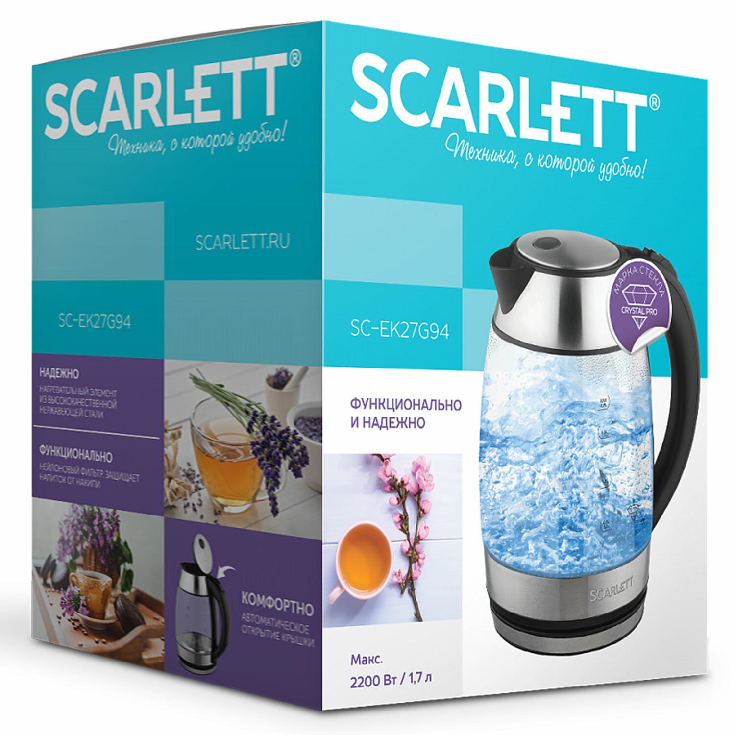 Электрический чайник SCARLETT SC-EK27G94 предназначен для использования дома или в офисе. Объем чайника составляет 1,7 л, что делает его идеальным для семьи или большой компании. Благодаря мощности 2200 Вт чайник вскипятит воду за считанные минуты.