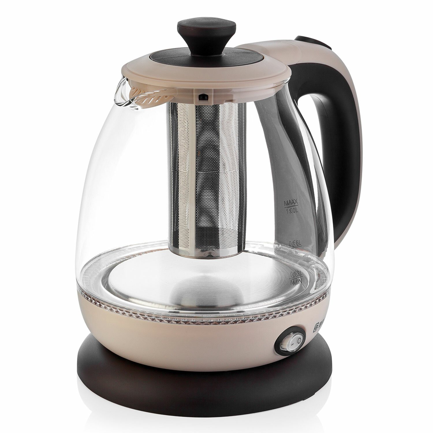 Чайник BRAYER BR1045BN, 1,8 л, 2200 Вт, закрытый нагревательный элемент, стекло, бежевый