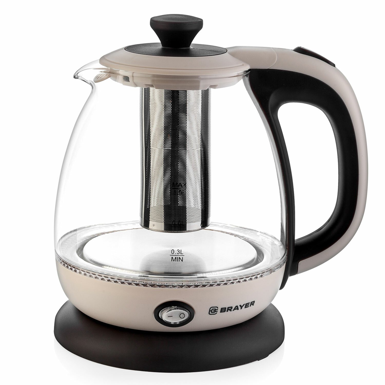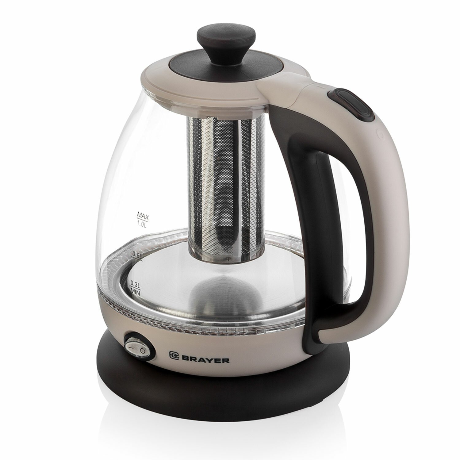 Чайник со съемным заварником BRAYER BR1046, 1 л, 1100 Вт, закрытый нагревательный элемент, бежевый