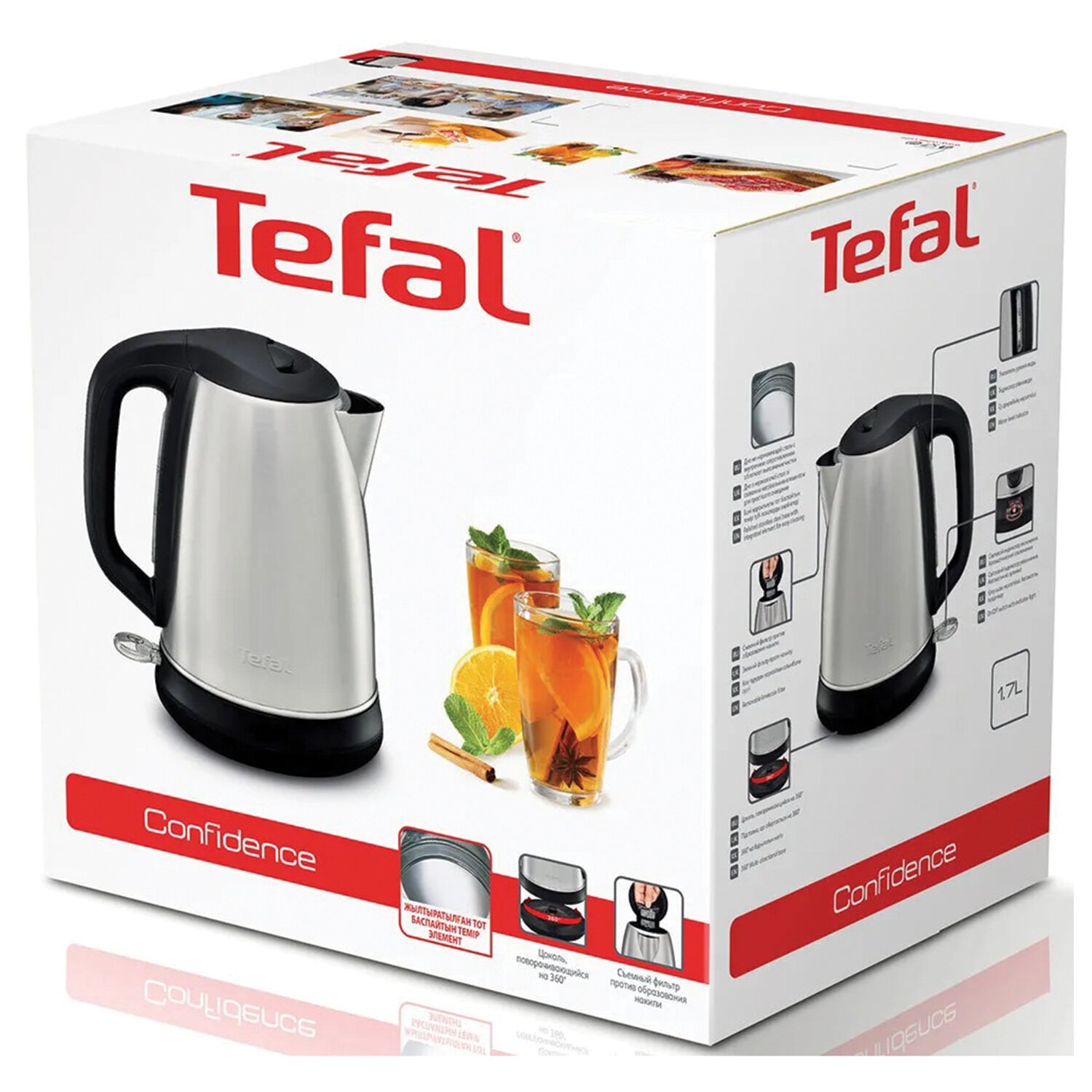 Чайник TEFAL KO450832, 1,7 л, 2400 Вт, закрытый нагревательный элемент, стекло, черный