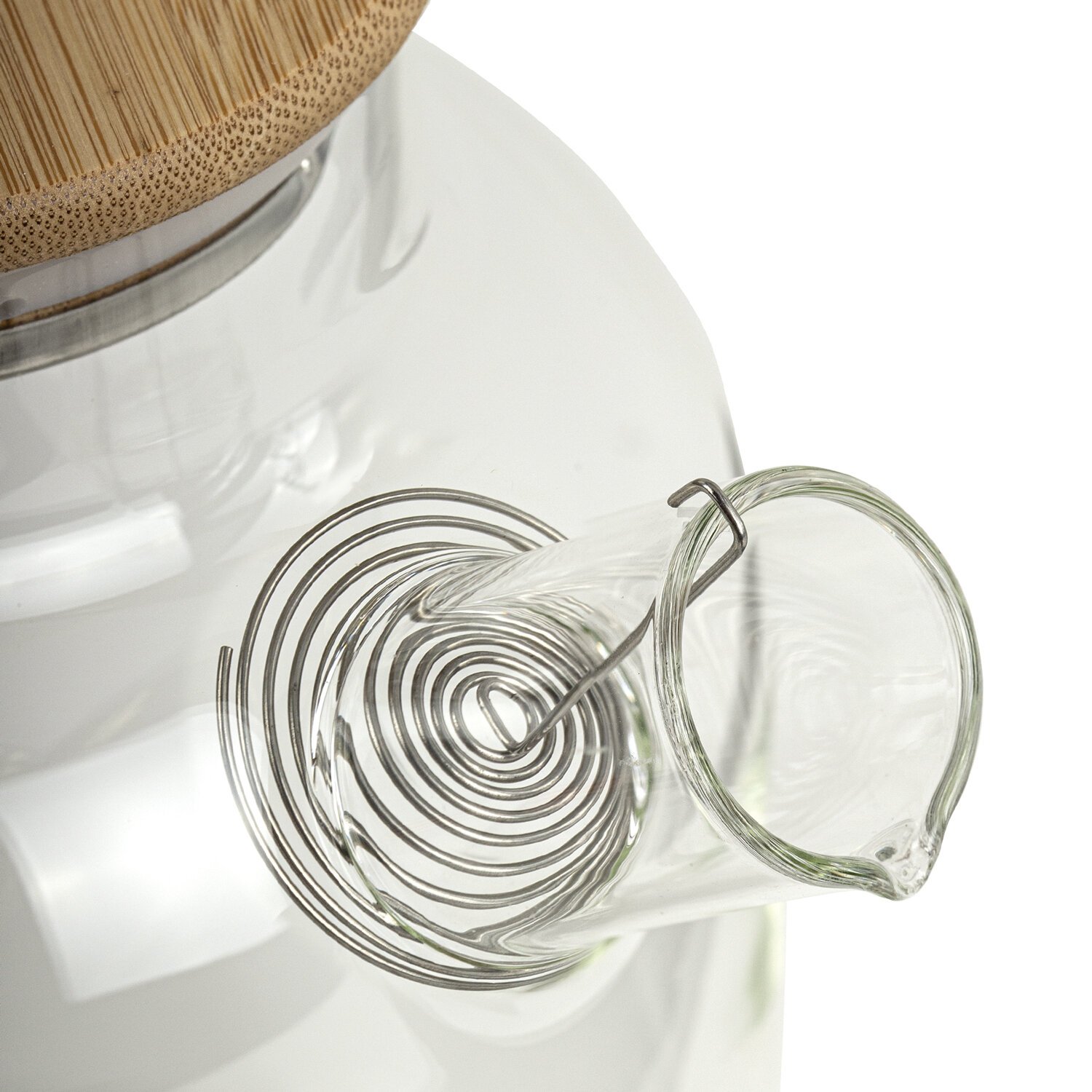 Круглое спиральное ситечко из нержавеющей стали предотвращает попадание чаинок в кружку при наливании. Крепится изнутри на носик чайника при помощи крючка.