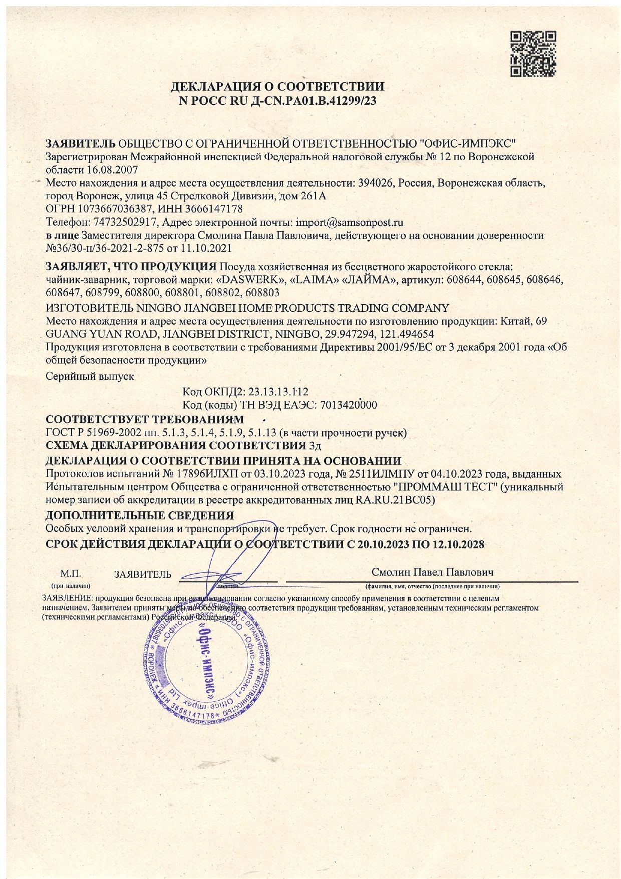 Заварочный чайник изготовлен из утолщенного жаропрочного стекла. Устойчив к царапинам и помутнениям. Выдерживает перепады температур от -30 до +400 градусов по Цельсию. Подходит для электрических и газовых плит. Можно мыть в посудомоечной машине.