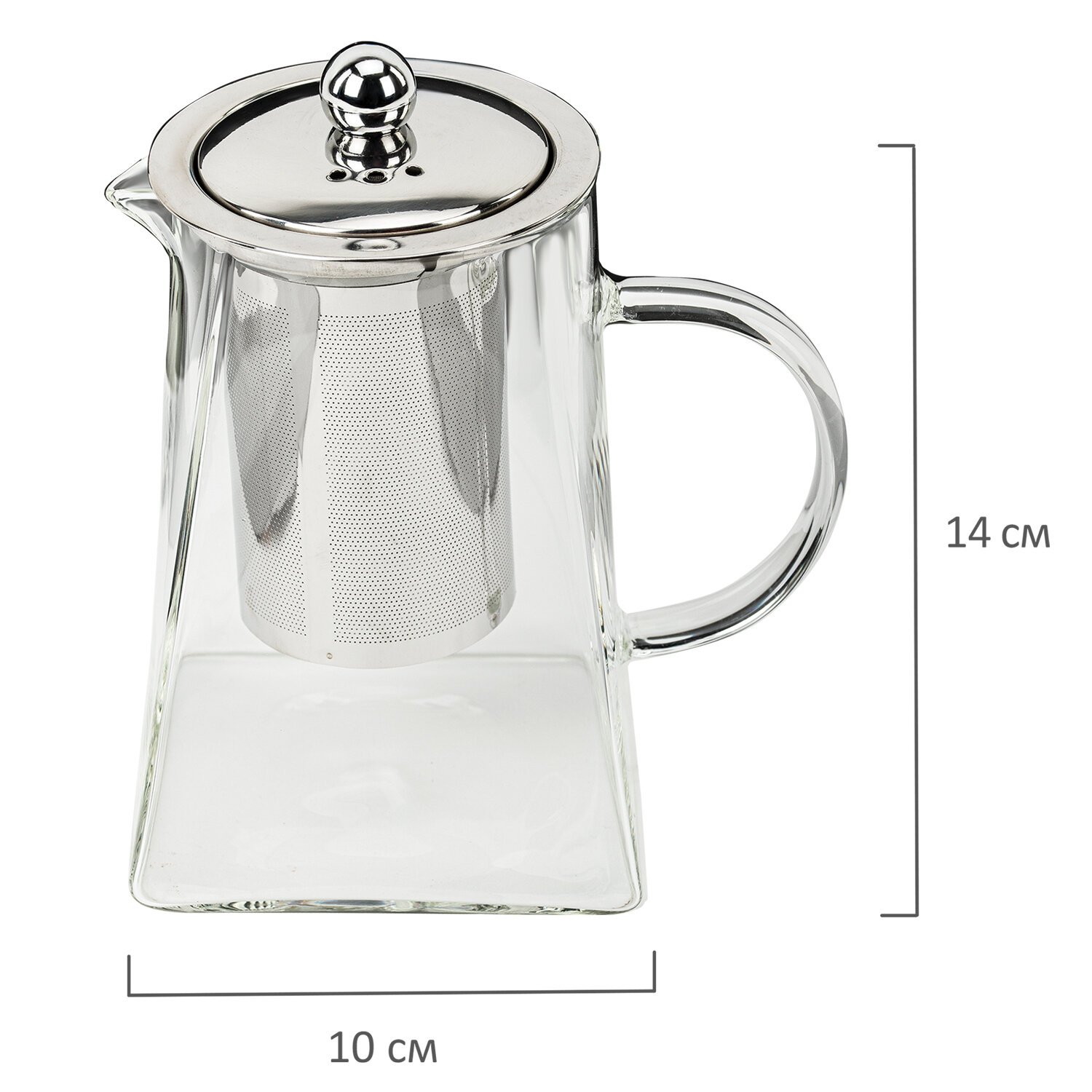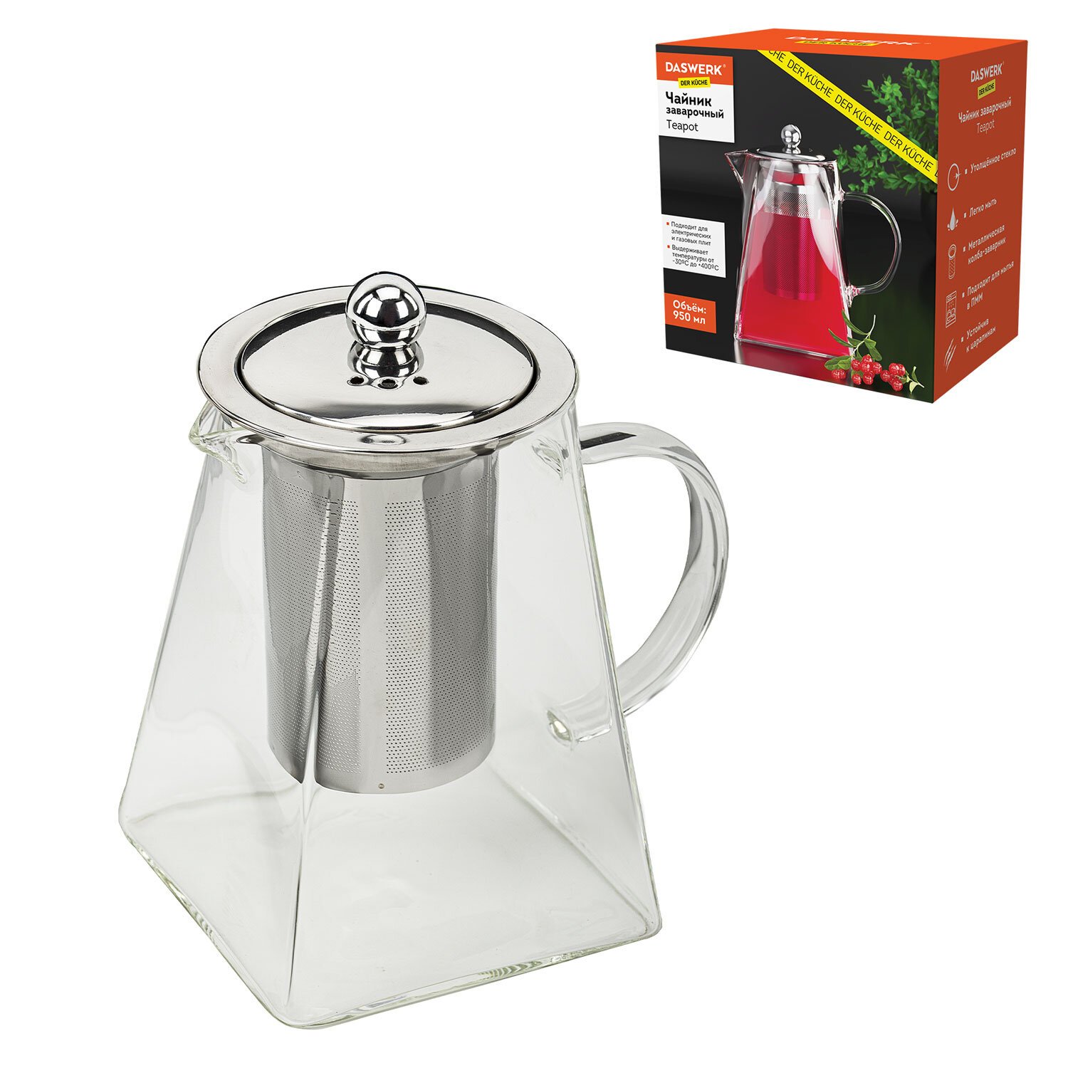 Чайник заварочный 950 мл, жаропрочное стекло, металлическая колба-заварник, DASWERK, 608647
