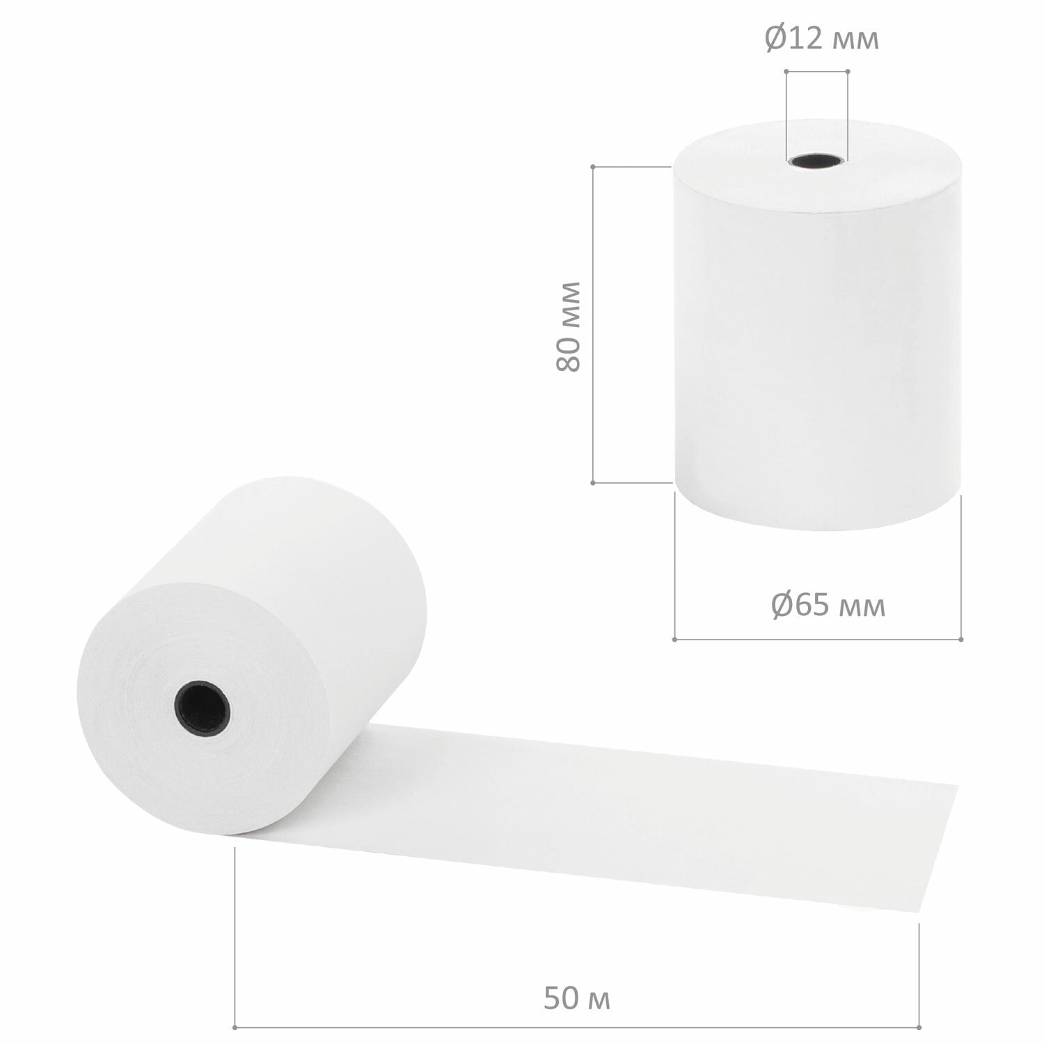Чековая лента ТЕРМОБУМАГА 80 мм (диаметр 62 мм, длина 60 м, втулка 12 мм) КОМПЛЕКТ 6 шт., BRAUBERG, 112355, 52375