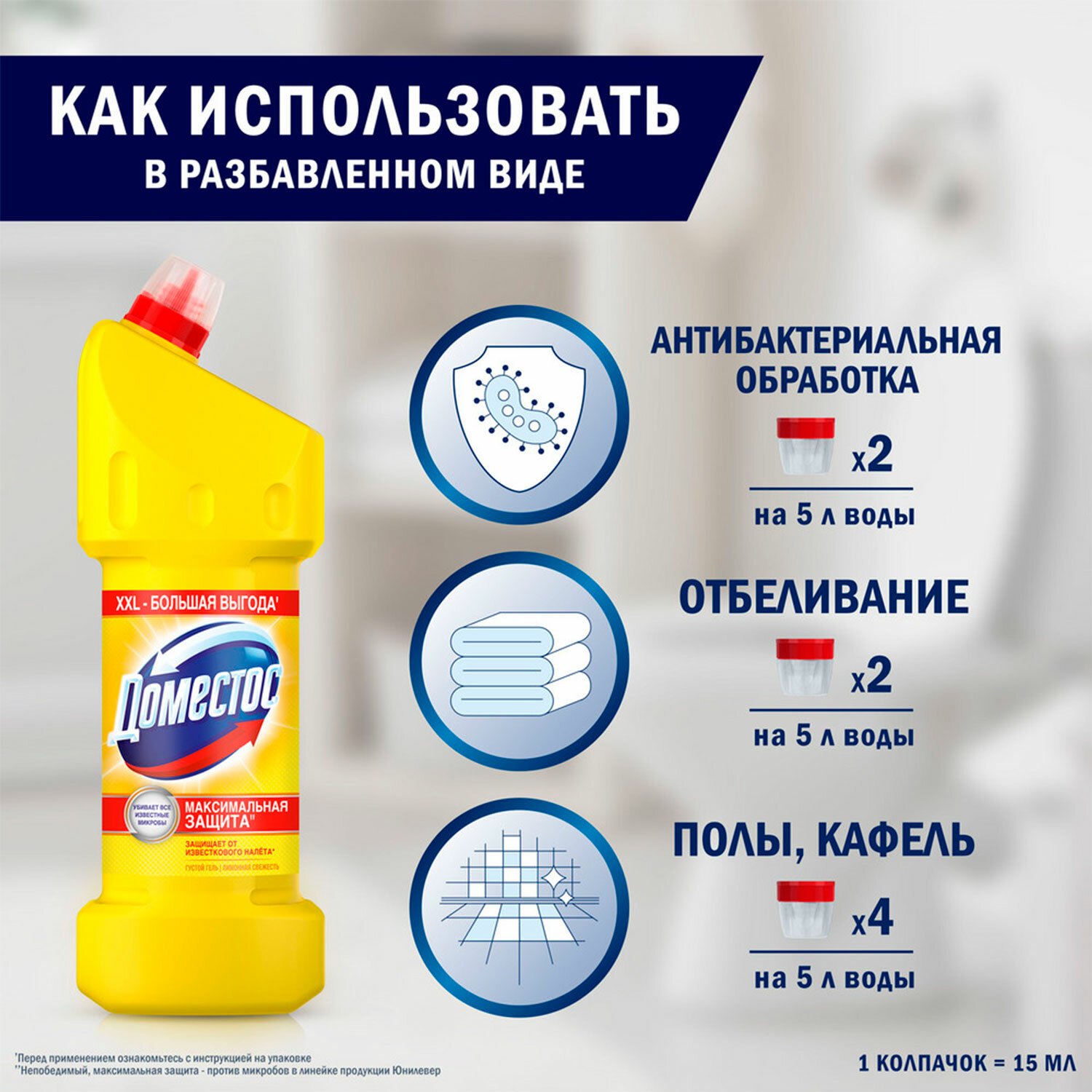 Чистящее средство 1,5 л, DOMESTOS (Доместос) "Лимонная свежесть", с отбеливающим эффектом, 67682978