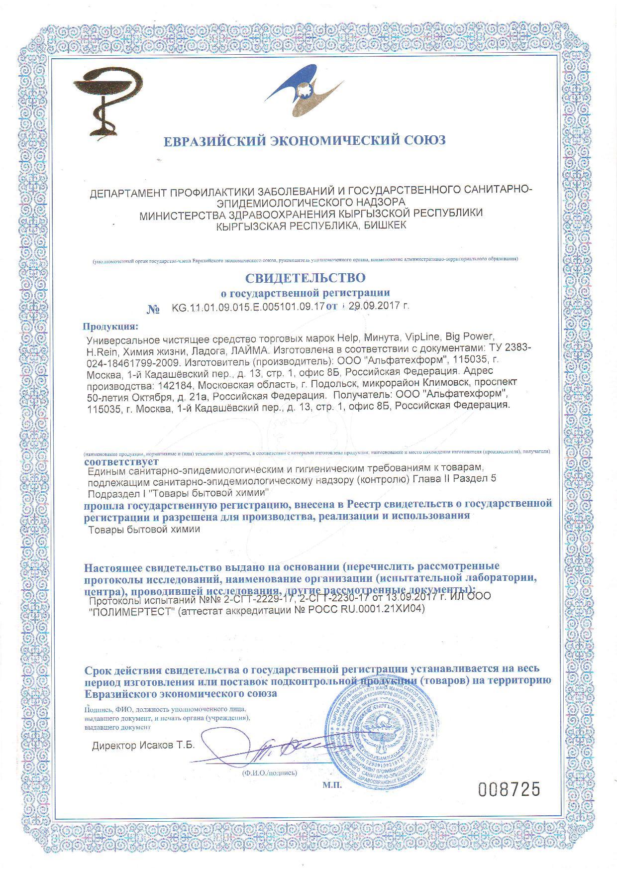 | Эффект от использования | дезинфекция |