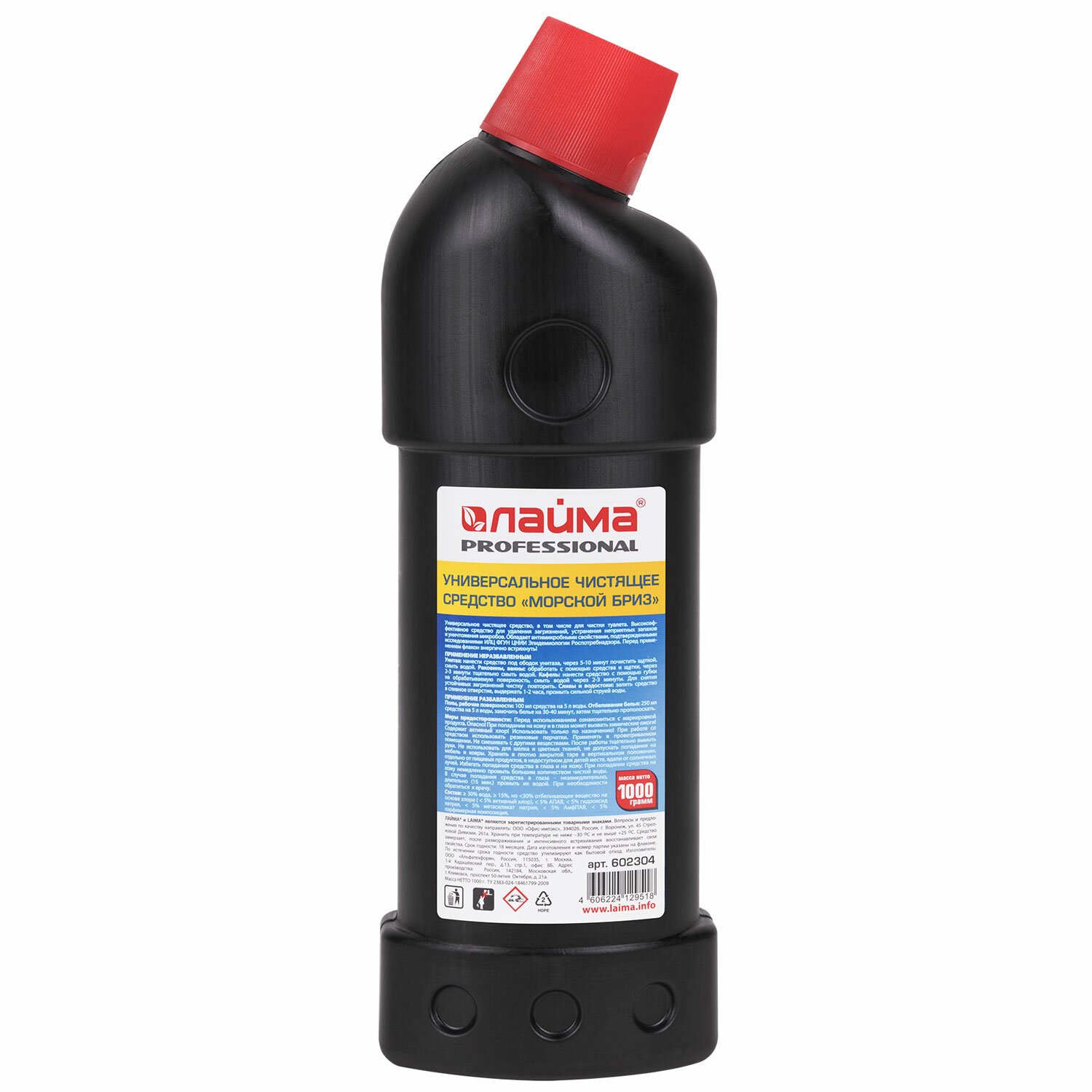 Состав: вода очищенная, менее 5% АПАВ, менее 5% НПАВ, менее 5% отбеливающего вещества на основе хлора, гидроксид натрия, стабилизатор, парфюмерная композиция.