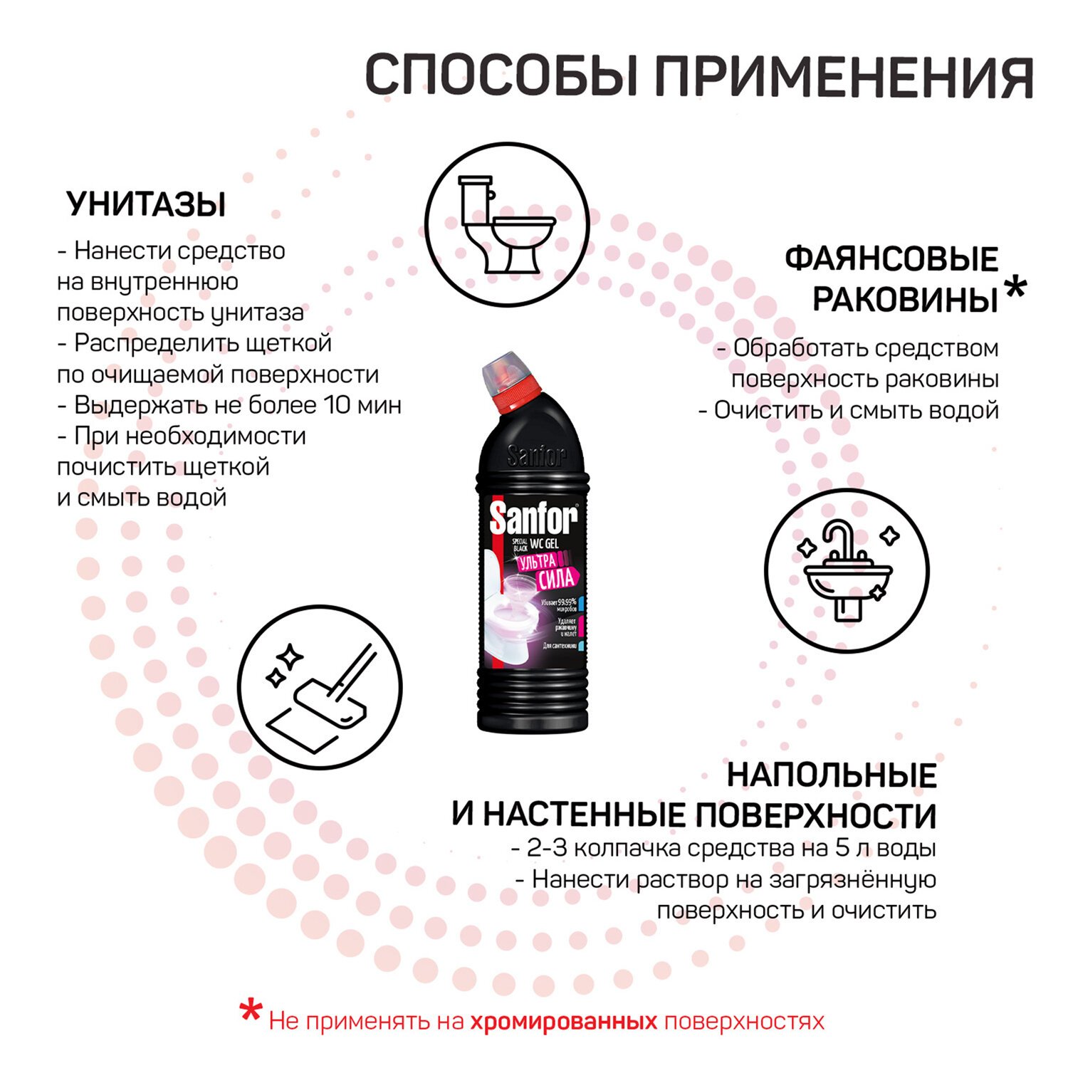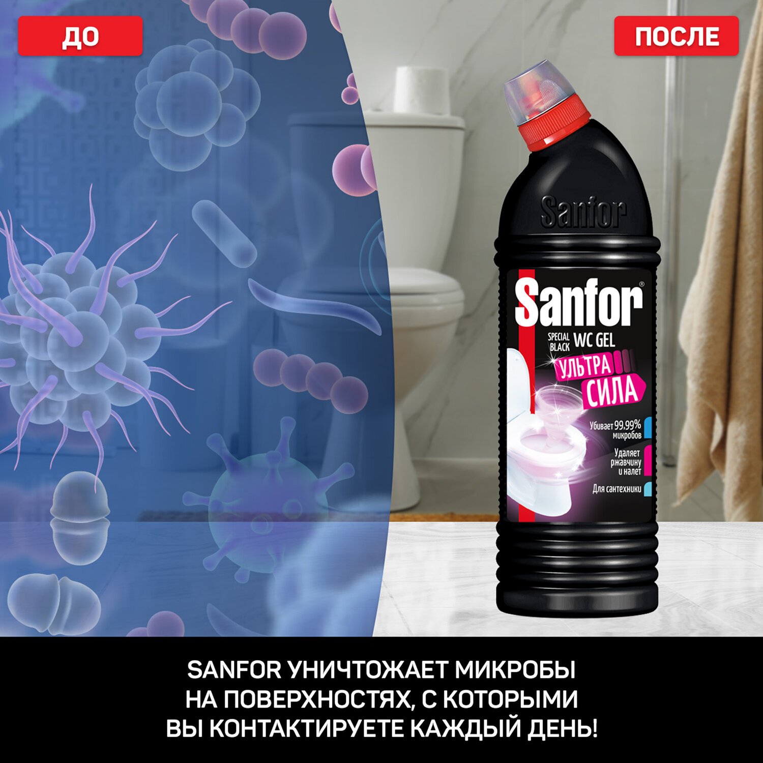 Чистящее средство SANFOR WC gel "Special Black" – это современный подход к генеральной уборке туалета и ванной!