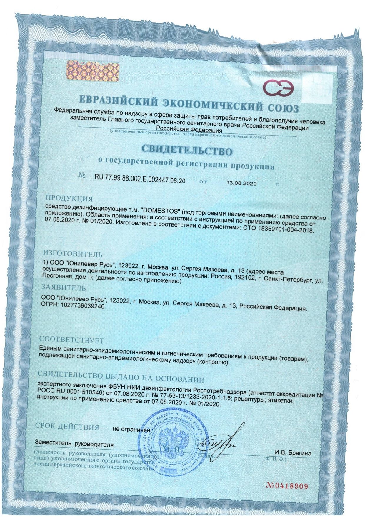 Состав: < 5% гипохлорит натрия, < 5% анионные ПАВ, < 5% неионогенные ПАВ, < 5% мыло, < 5% отдушка.