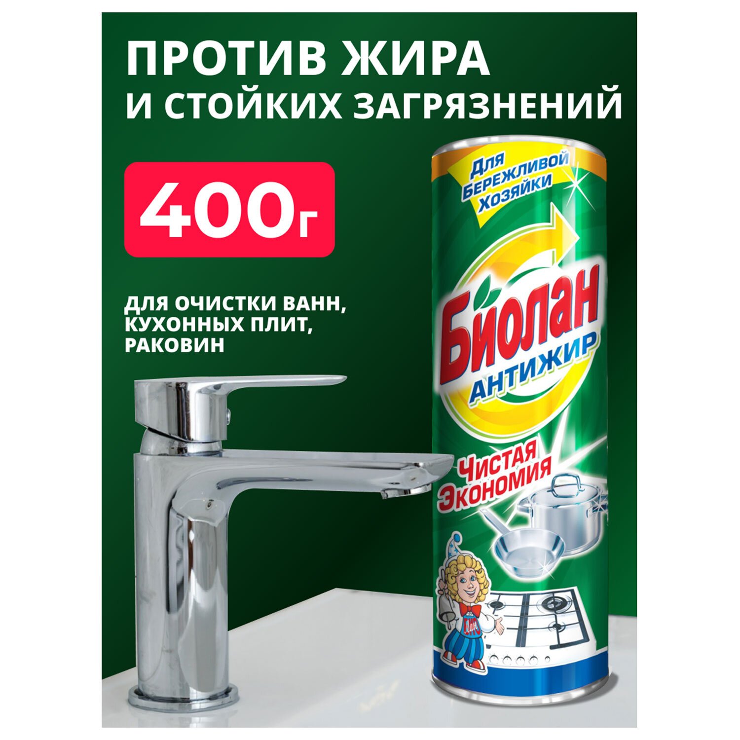 Чистящее средство Биолан Чистая Экономия Антижир, 400 г Чистящий порошок Биолан обеспечивает безупречную чистоту на кухне и ванной комнате.
