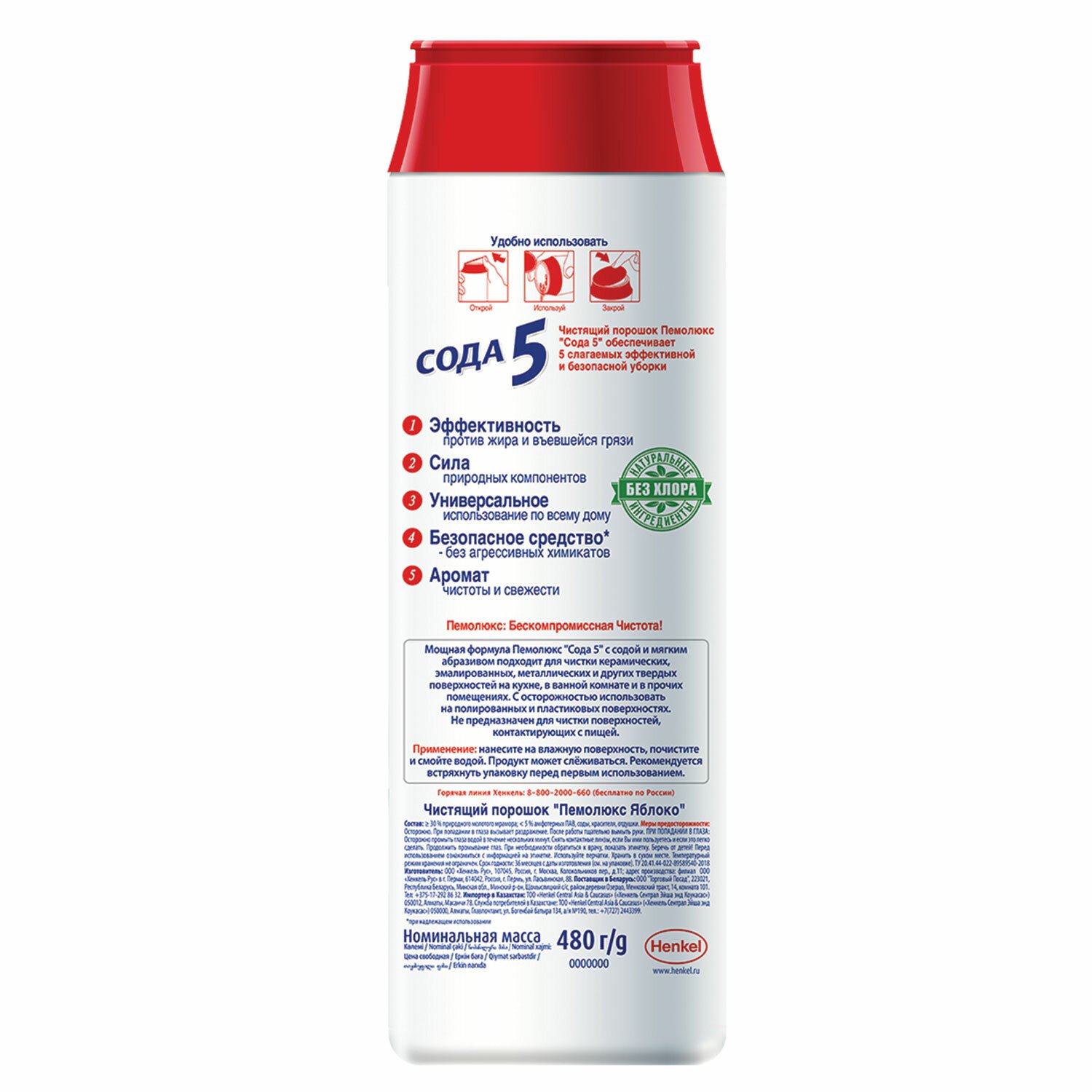 Чистящее средство 480 г, ПЕМОЛЮКС Сода-5/7, "Яблоко", порошок, 2414453
