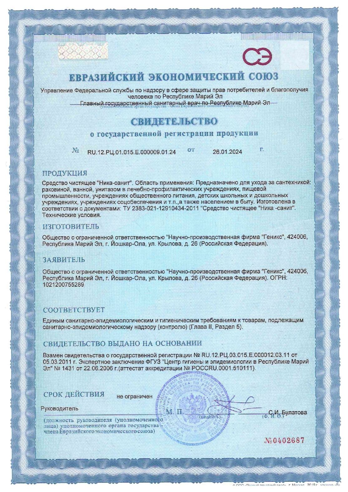 Разрешено на предприятиях общественного питания, пищевой промышленности, в лечебно-профилактических, детских школьных и дошкольных учреждениях, на объектах сферы обслуживания и в быту населением.
