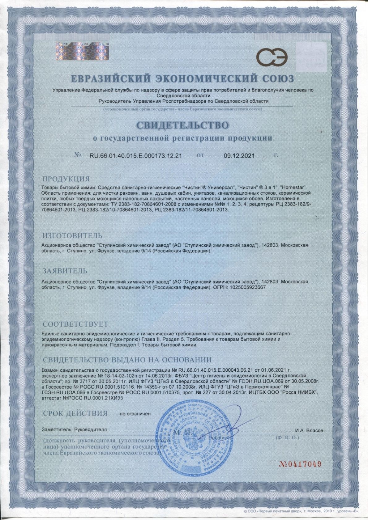 Чистящее средство 750 г, ЧИСТИН "Универсал", содержит активный хлор, 2794