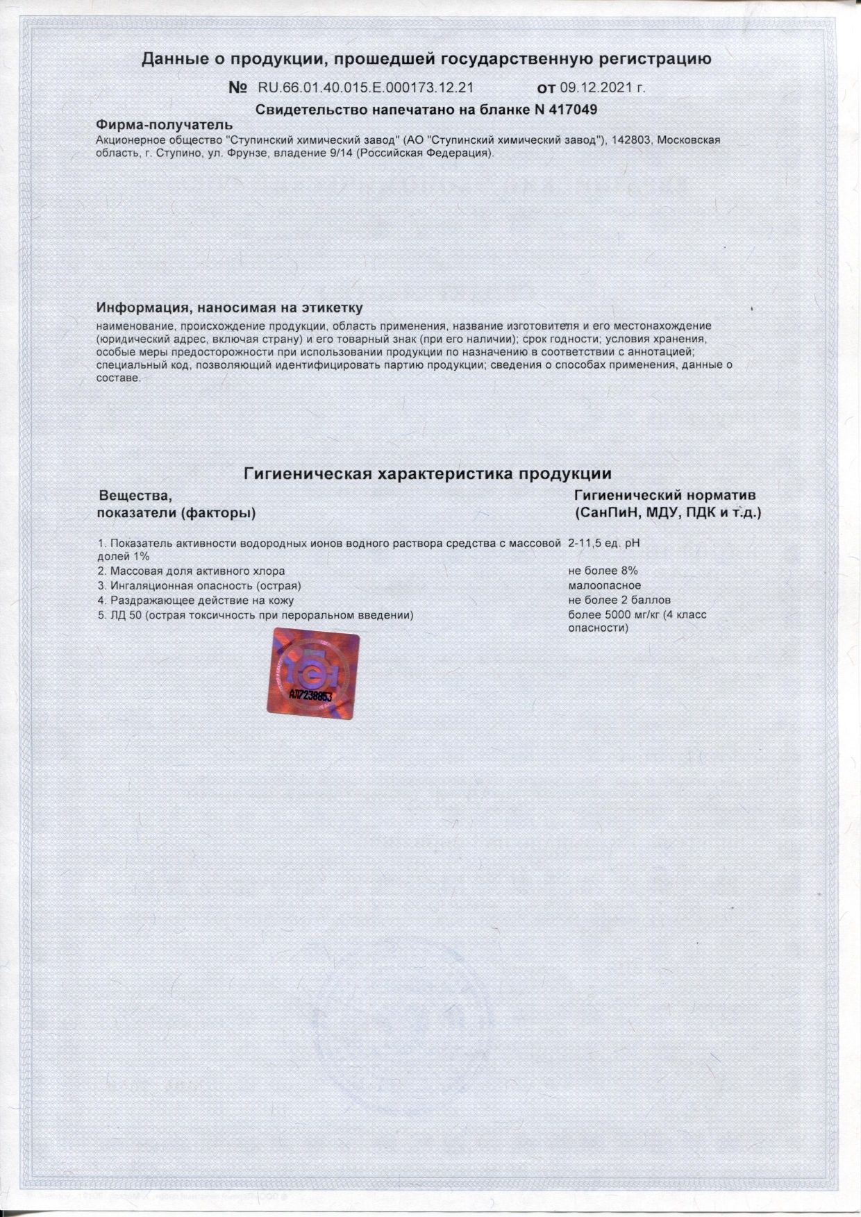 | Содержит | хлор |