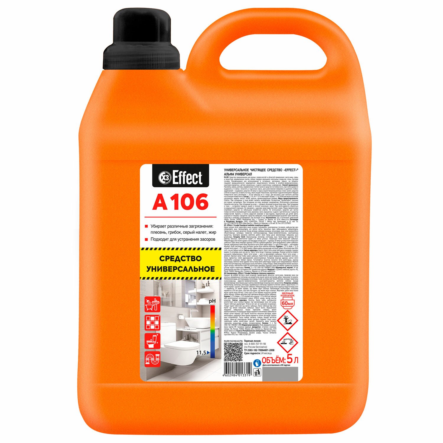 Средство EFFECT "Alfa 106" предназначено для разных поверхностей и областей применения: сантехника, сливы и водостоки, керамическая плитка, любые твердые моющиеся напольные покрытия, стены, бытовая техника.